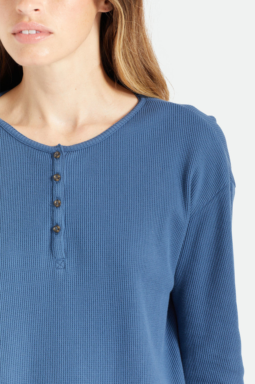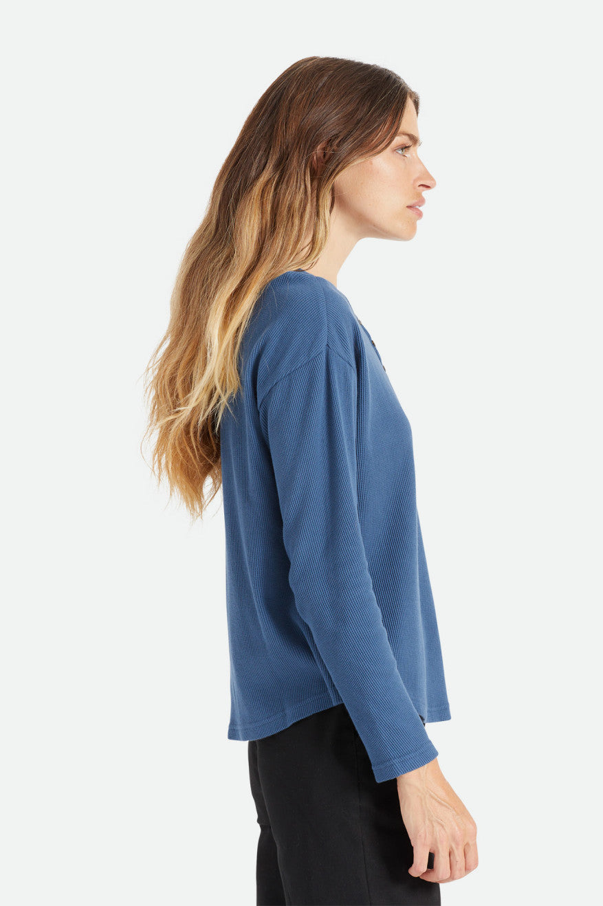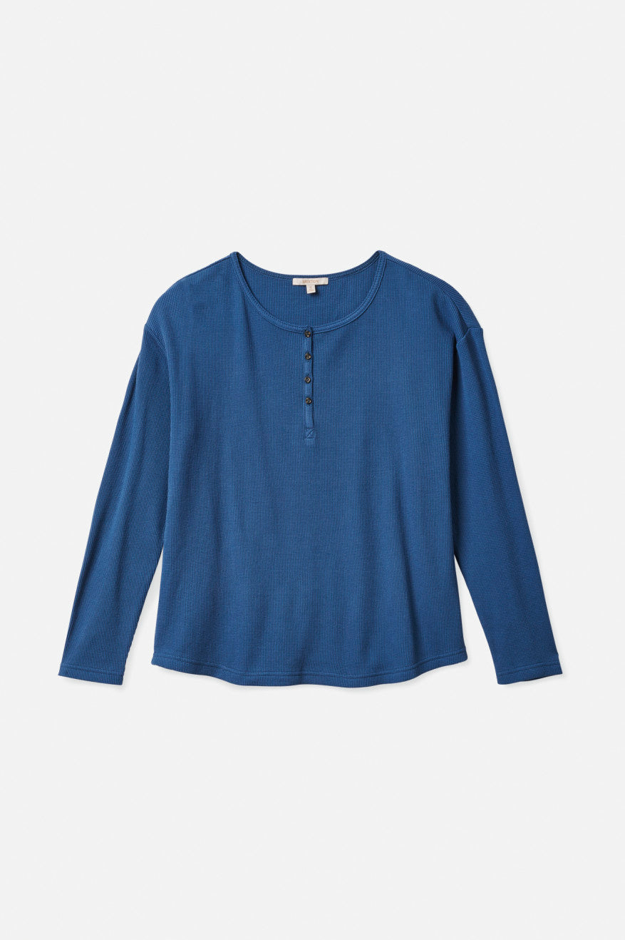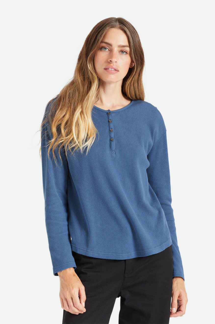 A relaxed henley in a waffle knit.