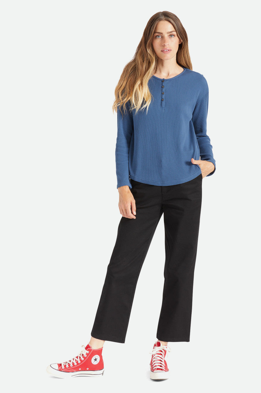 The Monty Long-Sleeve is a modern henley with a four-button placket. Designed with a relaxed fit, it looks casual yet clean tucked into trousers or worn loose. Made with 100% cotton and finished with a scooped hem.