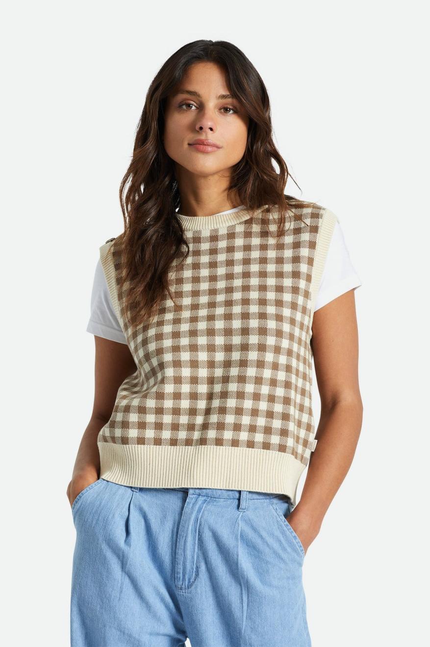 The Naples Sweater Vest is a timeless knit vest with a slightly fitted shape. Designed to be layered over a long sleeve, you can make an easy match with any top in your collection. It’s made with a cotton acrylic blend that features our custom yarn dye gingham for long-lasting hues. Finished with functional buttons at the shoulder and ribbed hems.