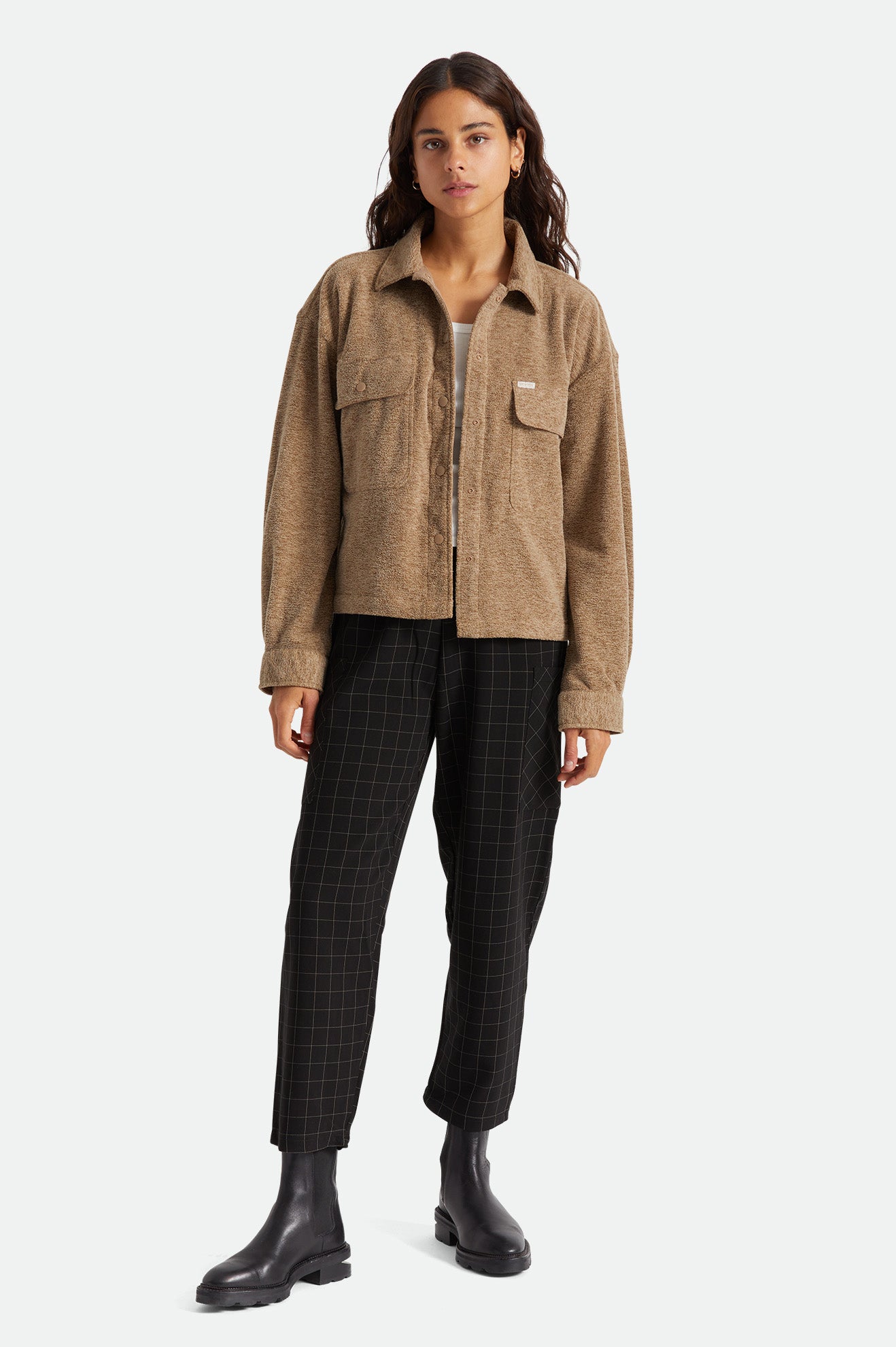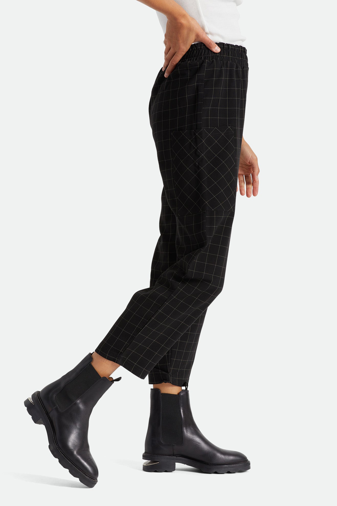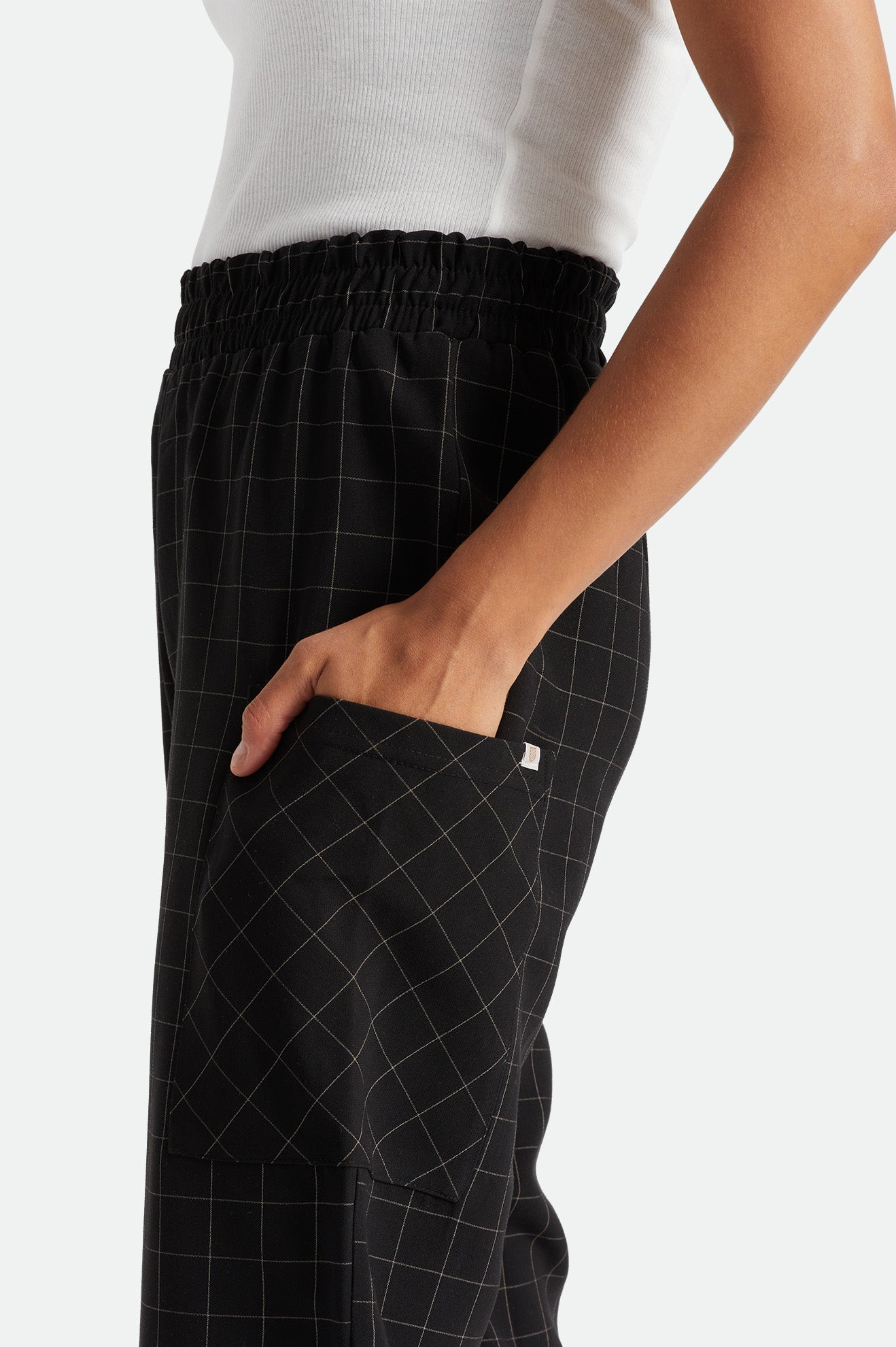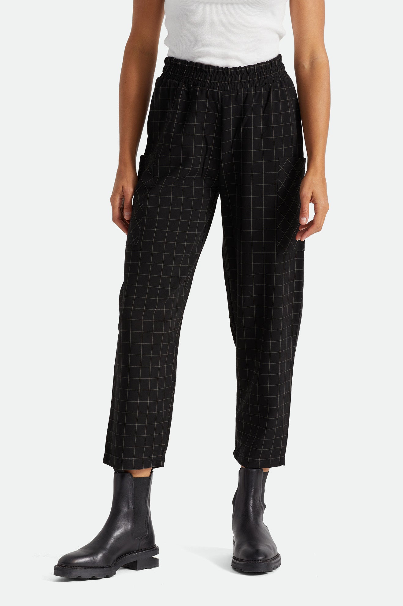 This style is built with polyester/rayon box plaid suiting so that you can move freely about your day. The Newcastle Pant features side cargo patch pockets and pull-on elastic waistband they go perfectly with all of our tops—from cropped fits to loungey tees.