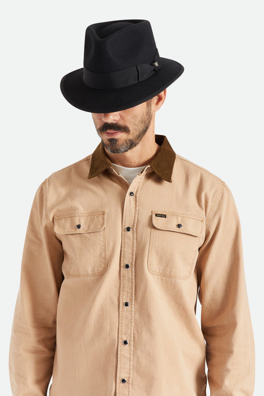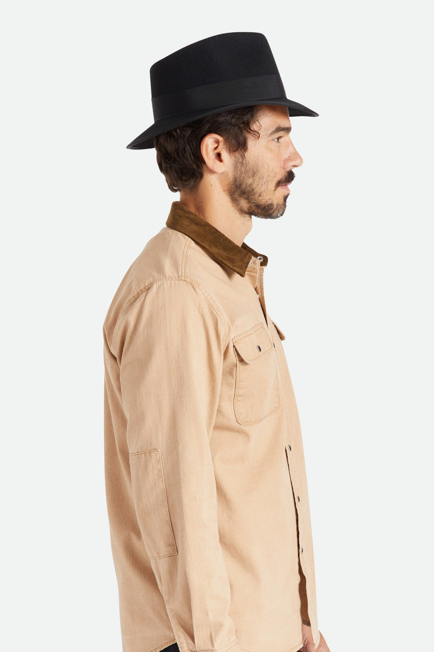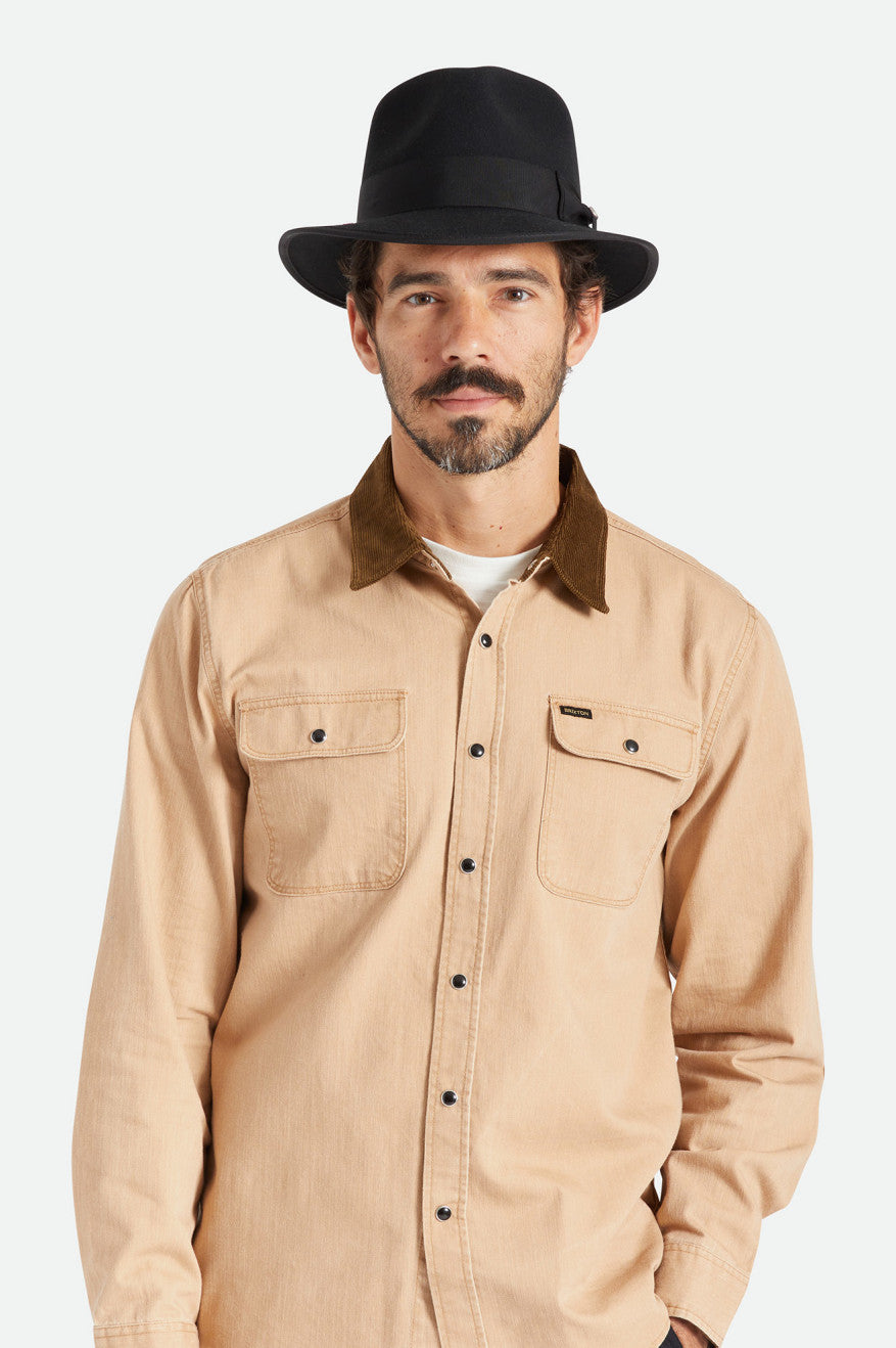 The Paco is an old soul fedora in contemporary Australian wool. Light stiffness and a short brim offer vintage ‘50s style while an adjustable internal sweatband creates a custom fit. A grosgrain band, brim taping and a custom liner finish this piece with polish.