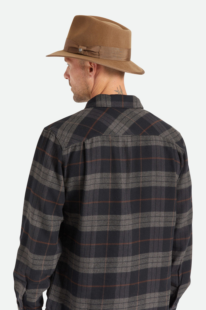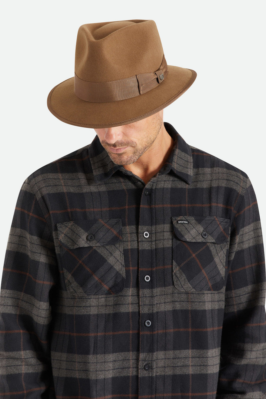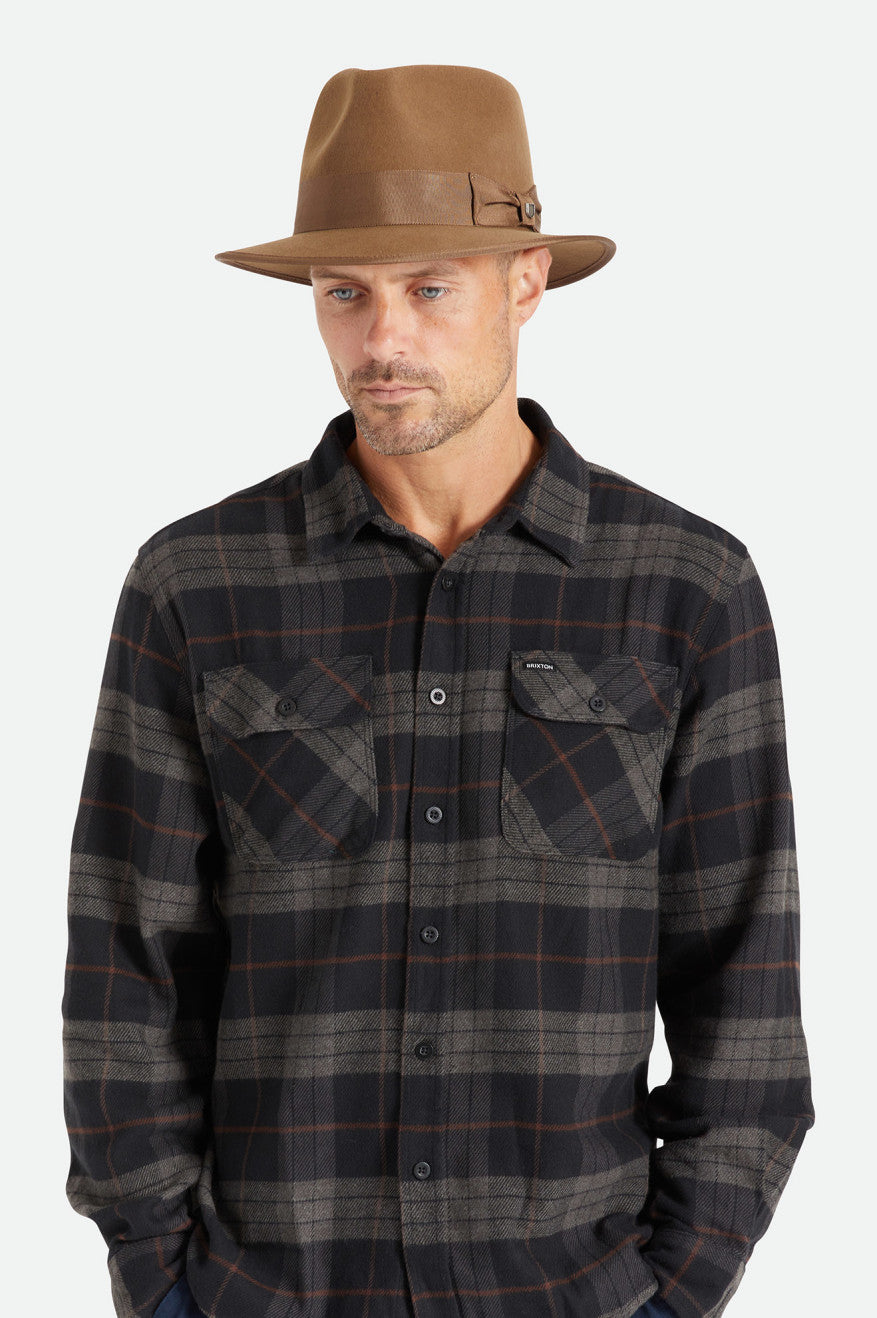 The Paco is an old soul fedora in contemporary Australian wool. Light stiffness and a short brim offer vintage ‘50s style while an adjustable internal sweatband creates a custom fit. A grosgrain band, brim taping and a custom liner finish this piece with polish.