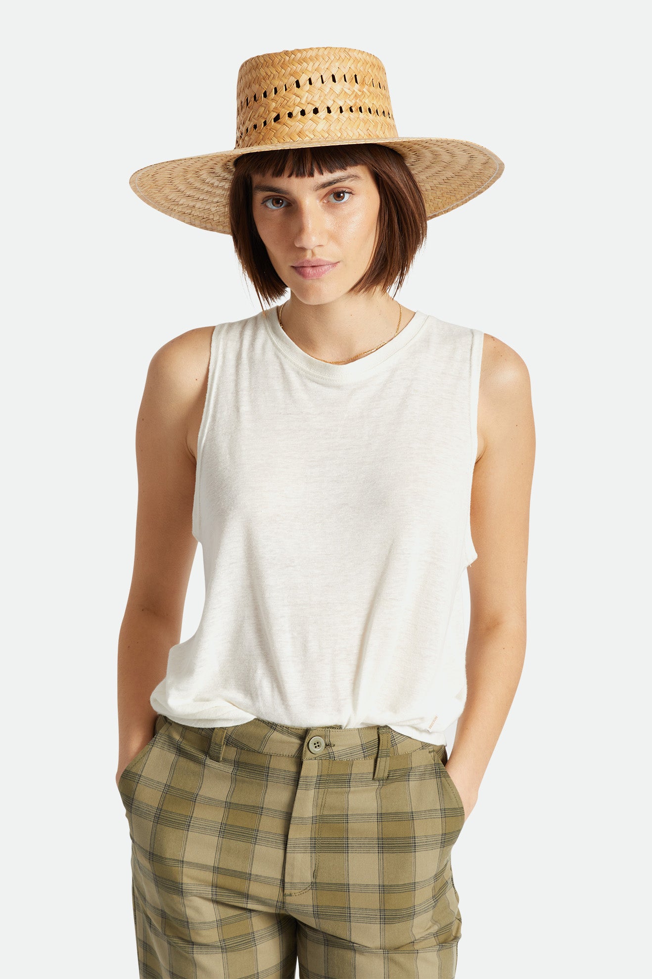 The Passage Sun Hat is a refined straw hat that feels as at home in California as it does in Casablanca. Paper straw feels light on the head while providing 50+ UPF. Decorated with a grosgrain band and metal crest pin, this one delivers vintage appeal.
