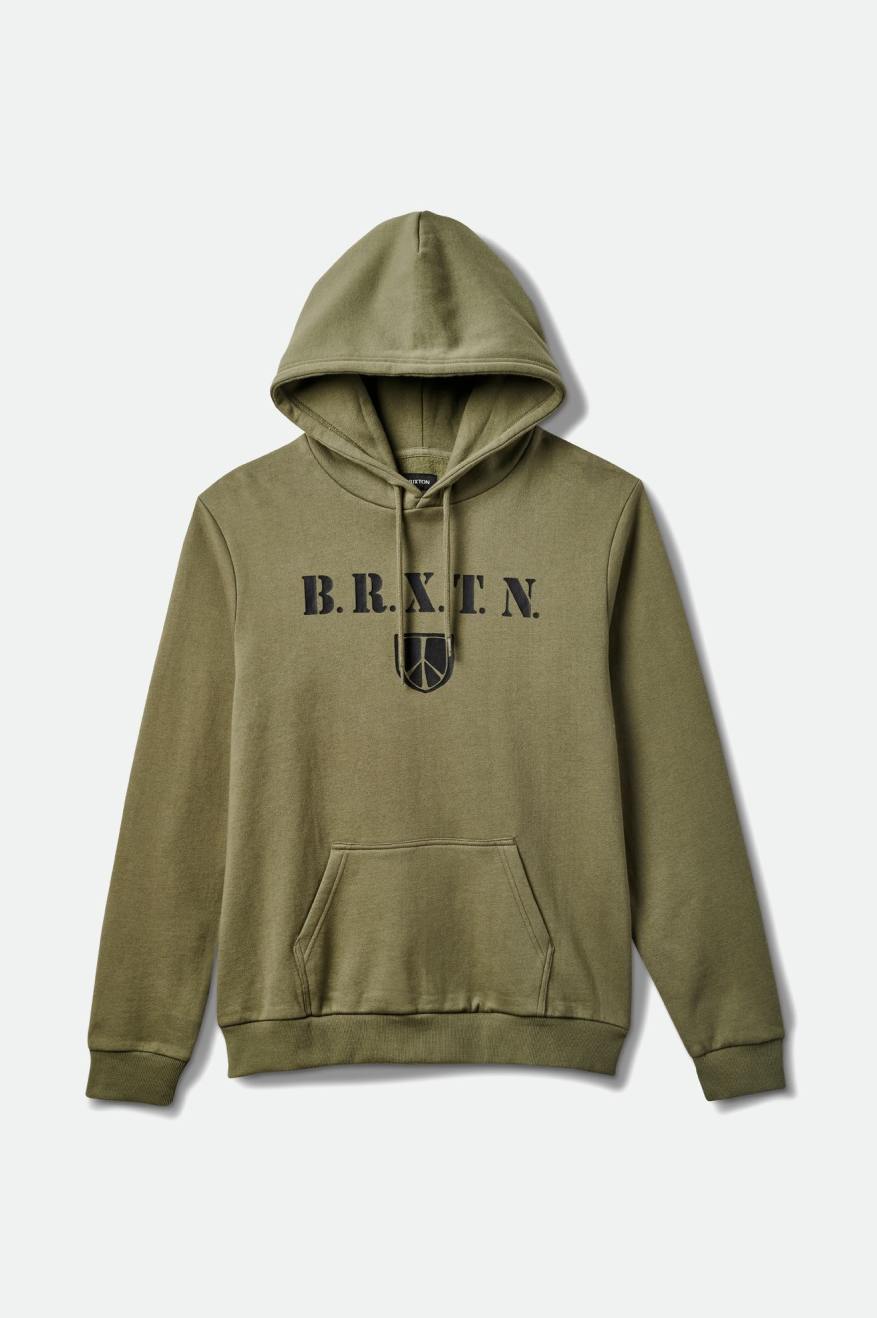 Finished with a a cocoon neckline, inset sleeves and a center front screen print, this hoodie keeps things simple. It features clean graphics with old school military inspiration. An immediate contender for your favorite sweater.