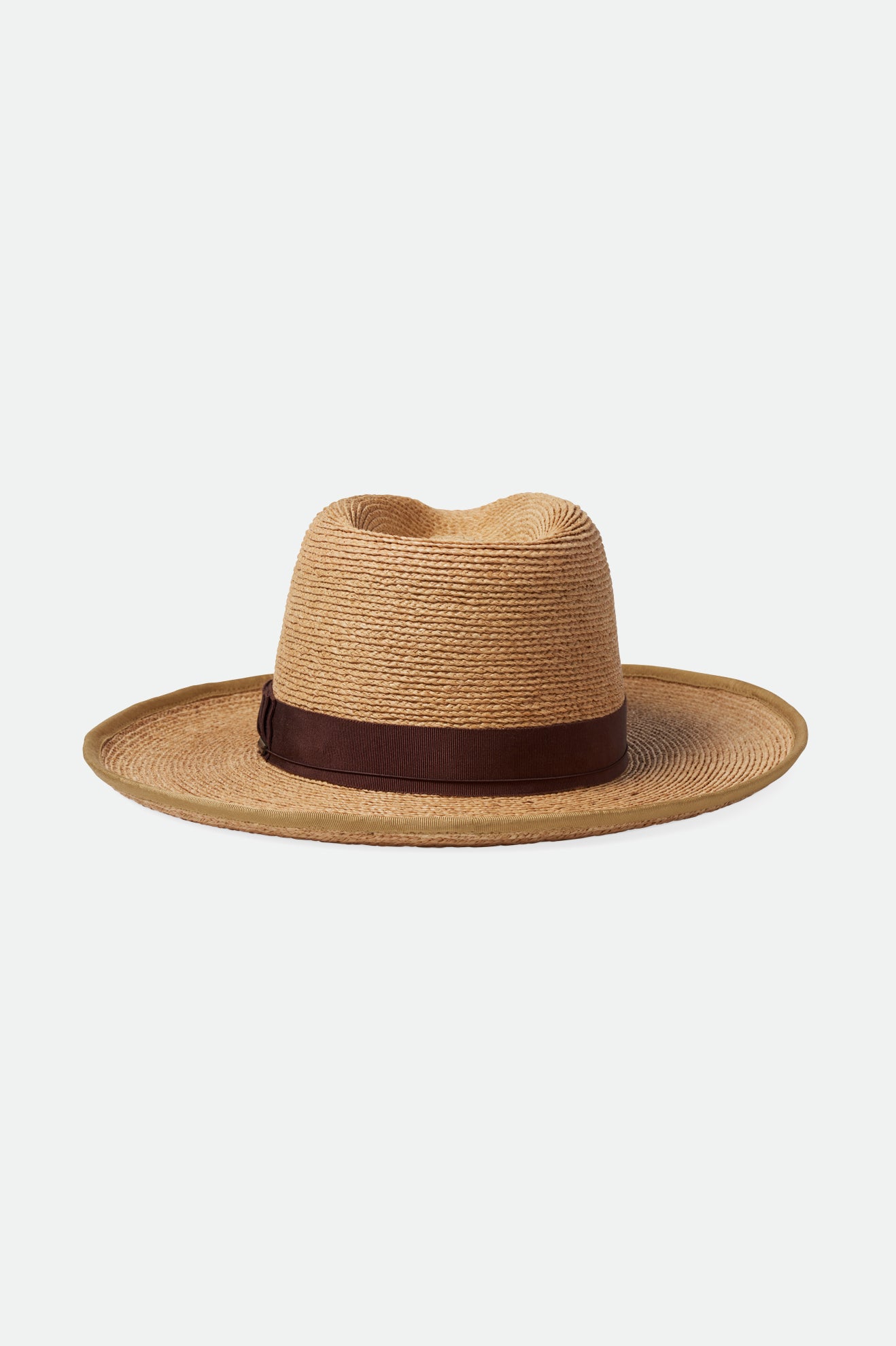 The Reno Straw is a warm weather version of a heritage form. Crafted with medium-structure paper braided straw, it provides 50+ UPF coverage and breathability. Decorated with a metal headwear plaque and grosgrain band.