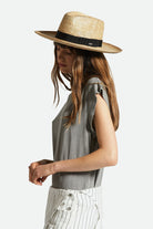 The Reno Straw is a warm weather version of a heritage form. Crafted with medium-structure paper braided straw, it provides 50+ UPF coverage and breathability. Decorated with a metal headwear plaque and grosgrain band.