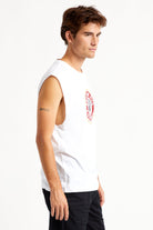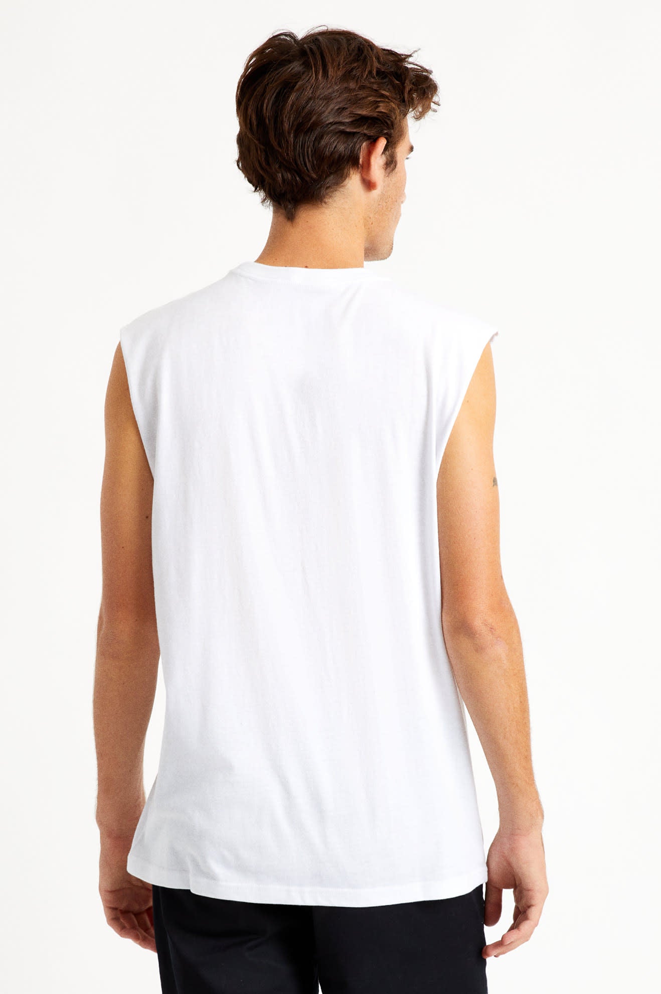 Featuring a center front crackle screen print and a relaxed fit, this easy tee has an 80s vintage edge to it.