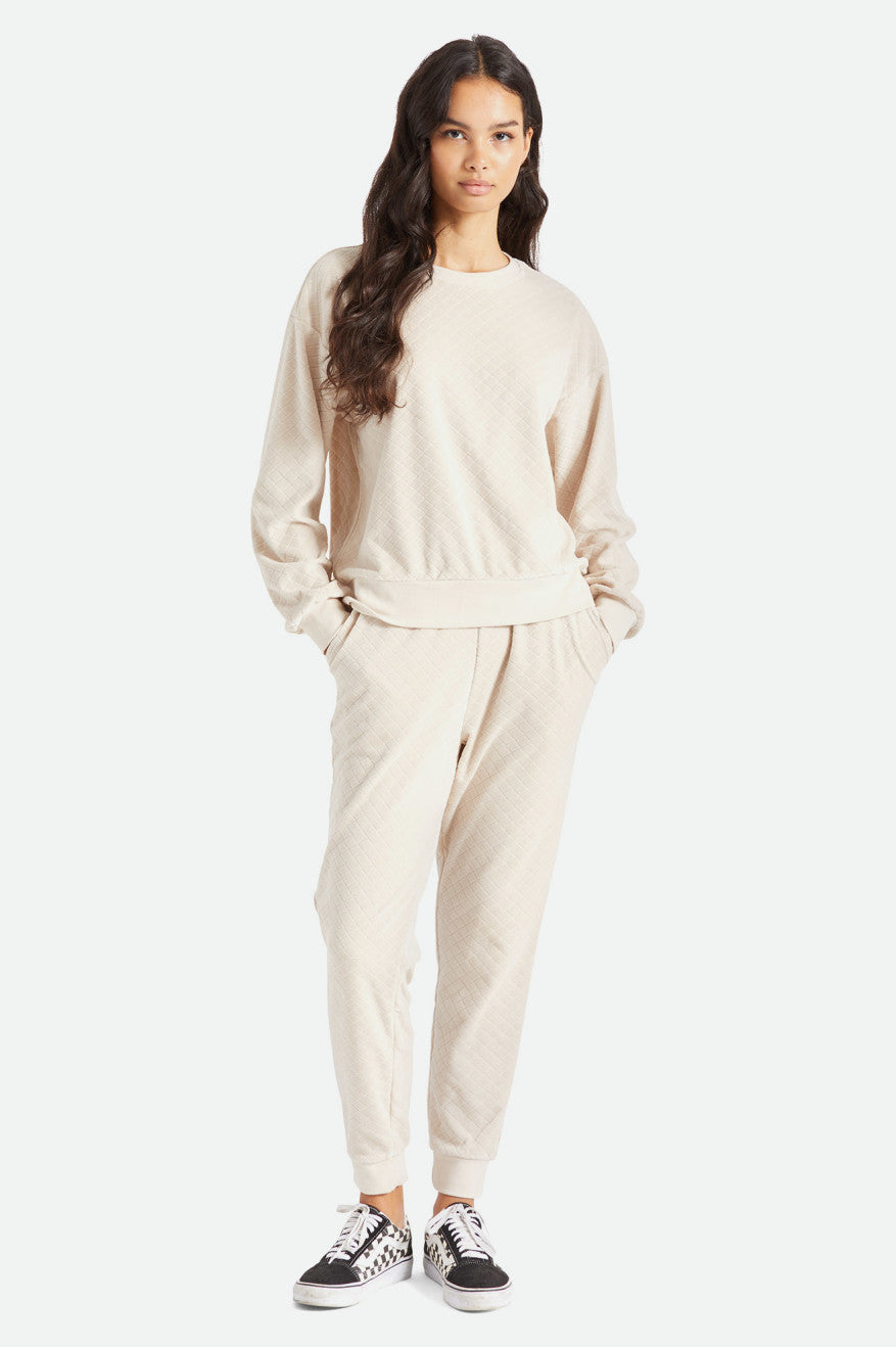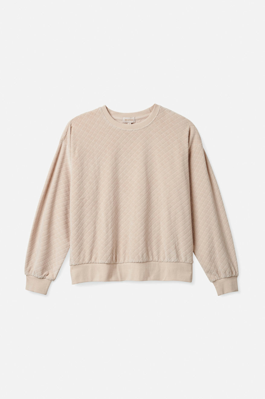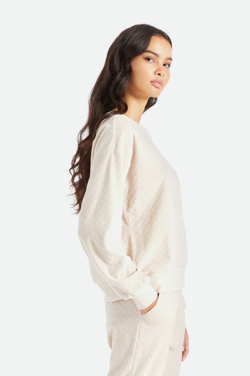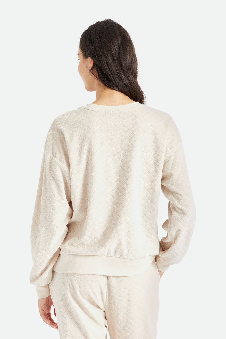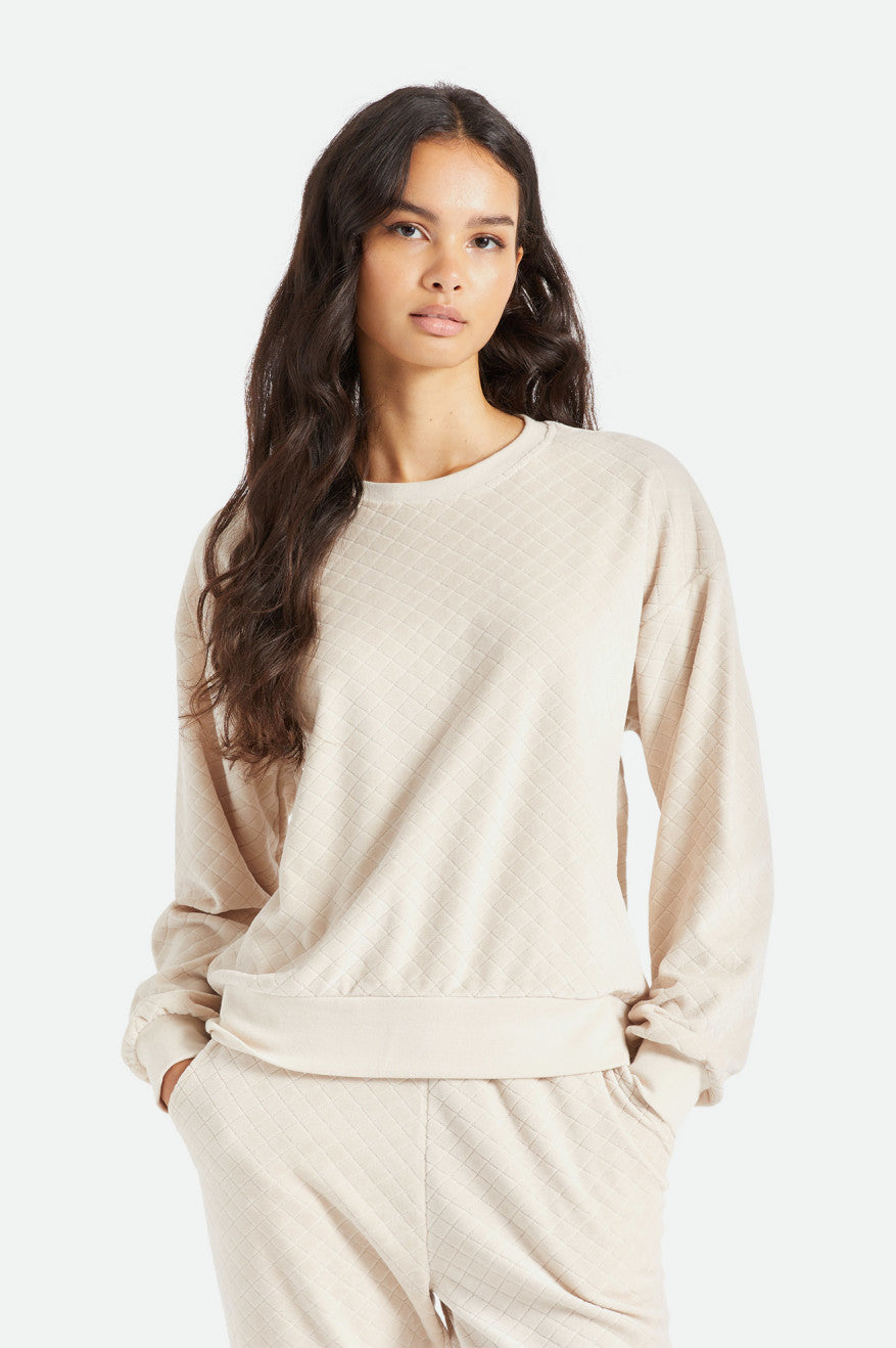 The Rocky Crew is a supremely soft pullover in a plush cotton blend. Unique diamond quilting adds texture and captures warmth, making this a cozy companion for self-care days. Designed with a relaxed fit and balloon sleeves.