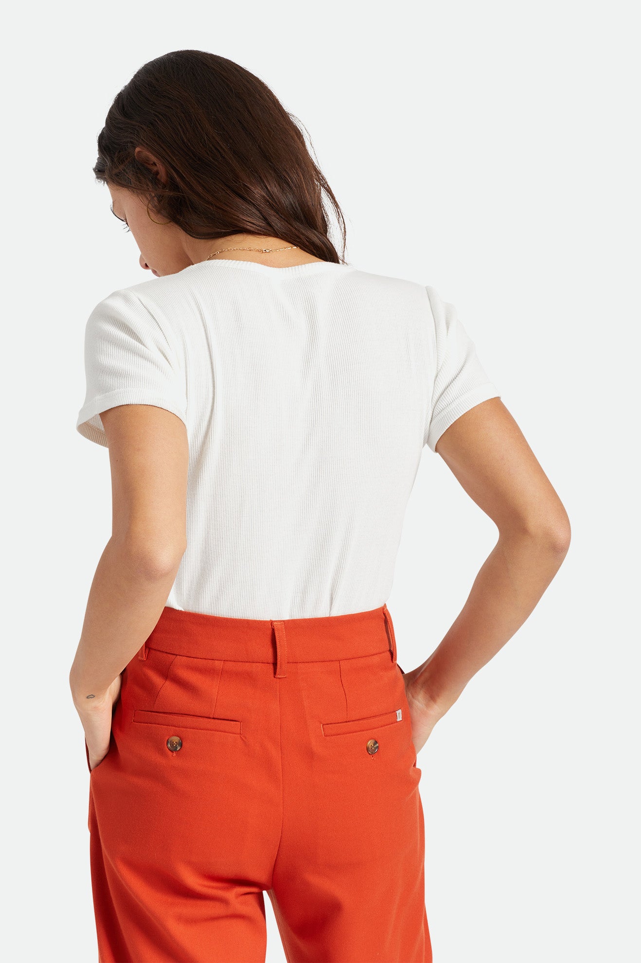 A simple staple, the Samantha Baby Tee is a great layering favorite that features a self neck binding, and an understated flag label at the side seam. Wear it under your favorite seasonal layers, or on its own when the sun is shining brightly.