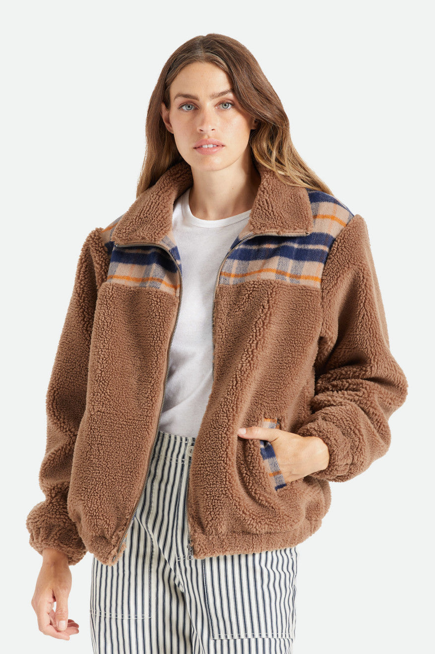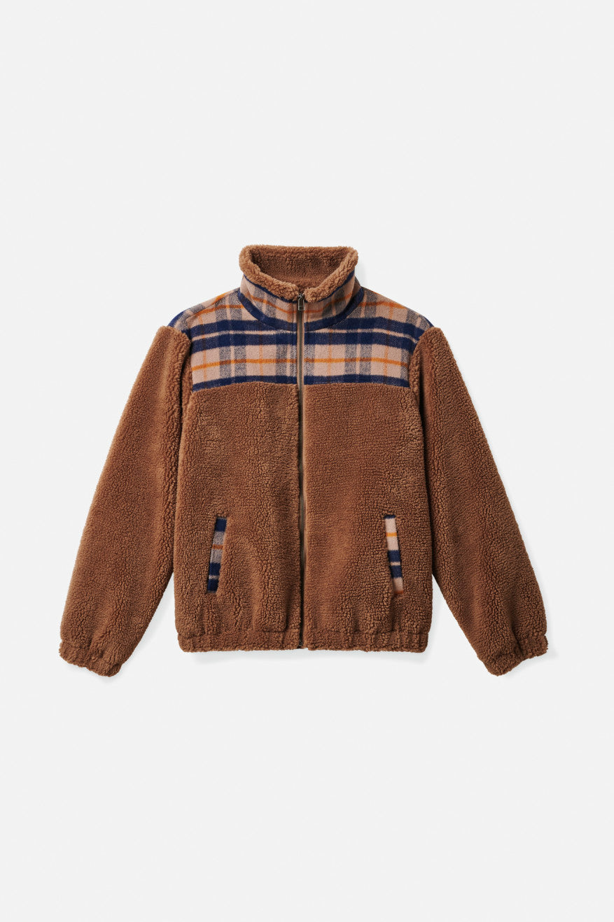 The Sheridan is a modern tribute to the jacket you permanently borrowed from your mom's closet. Built with plush polyester fleece, it has a full zip and elasticized cuffs and hemline. Plaid paneling contrasts the cozy sherpa and adds durability to the shoulders for your bags and backpacks. Keep it partly open and let the collar lie flat or zip it all the way up for a breeze-blocking mock neck finish.