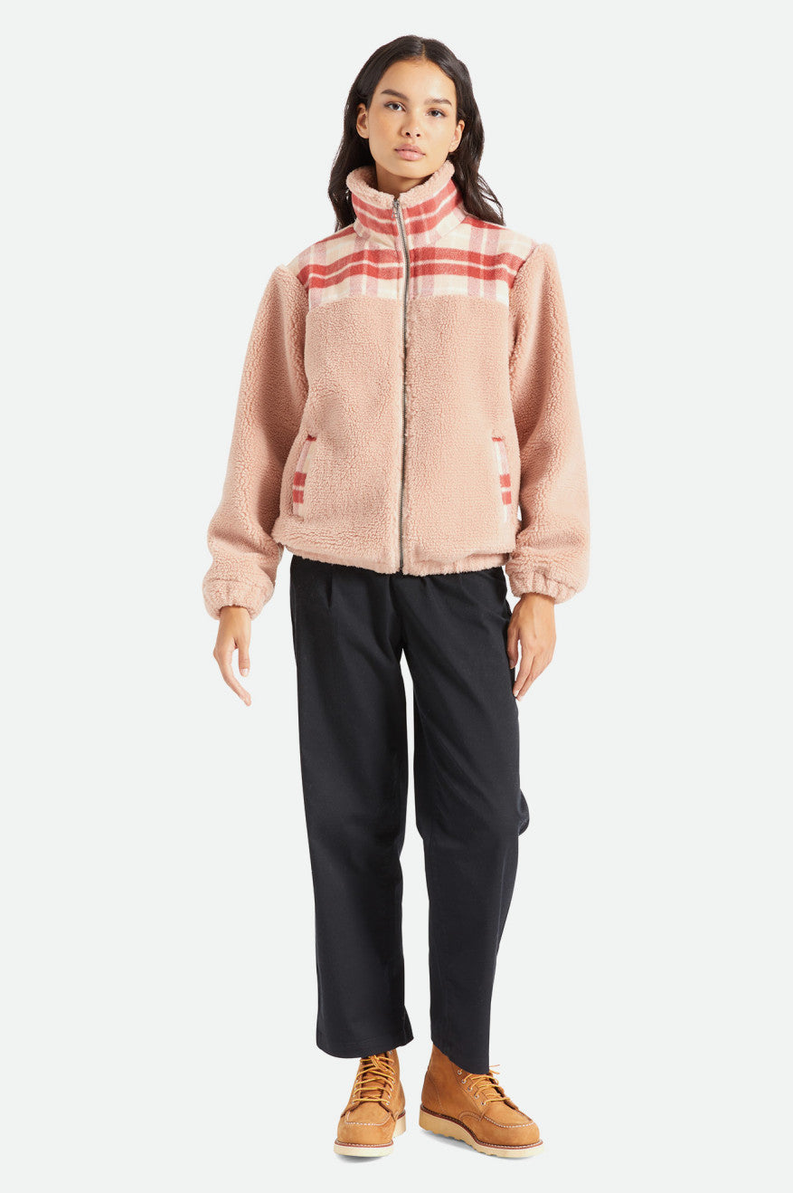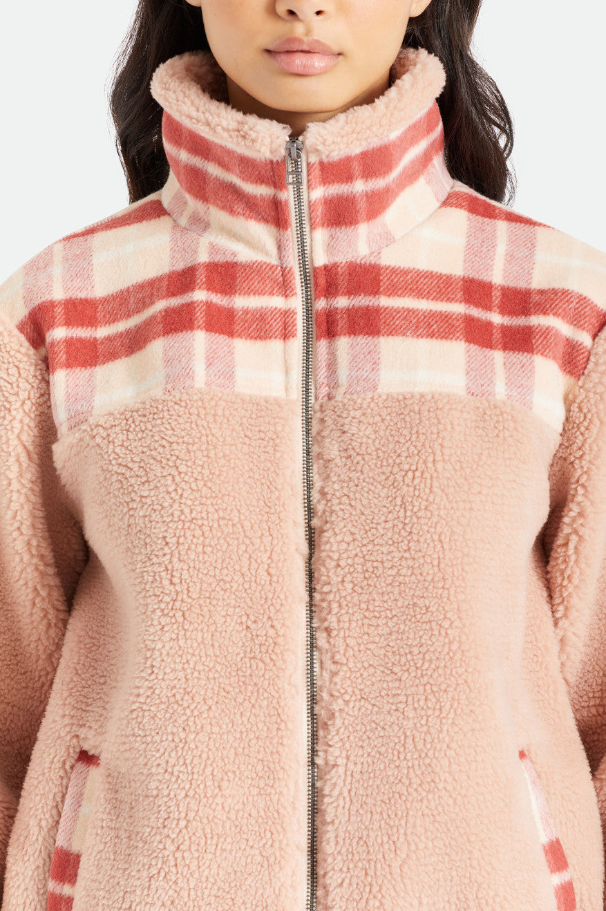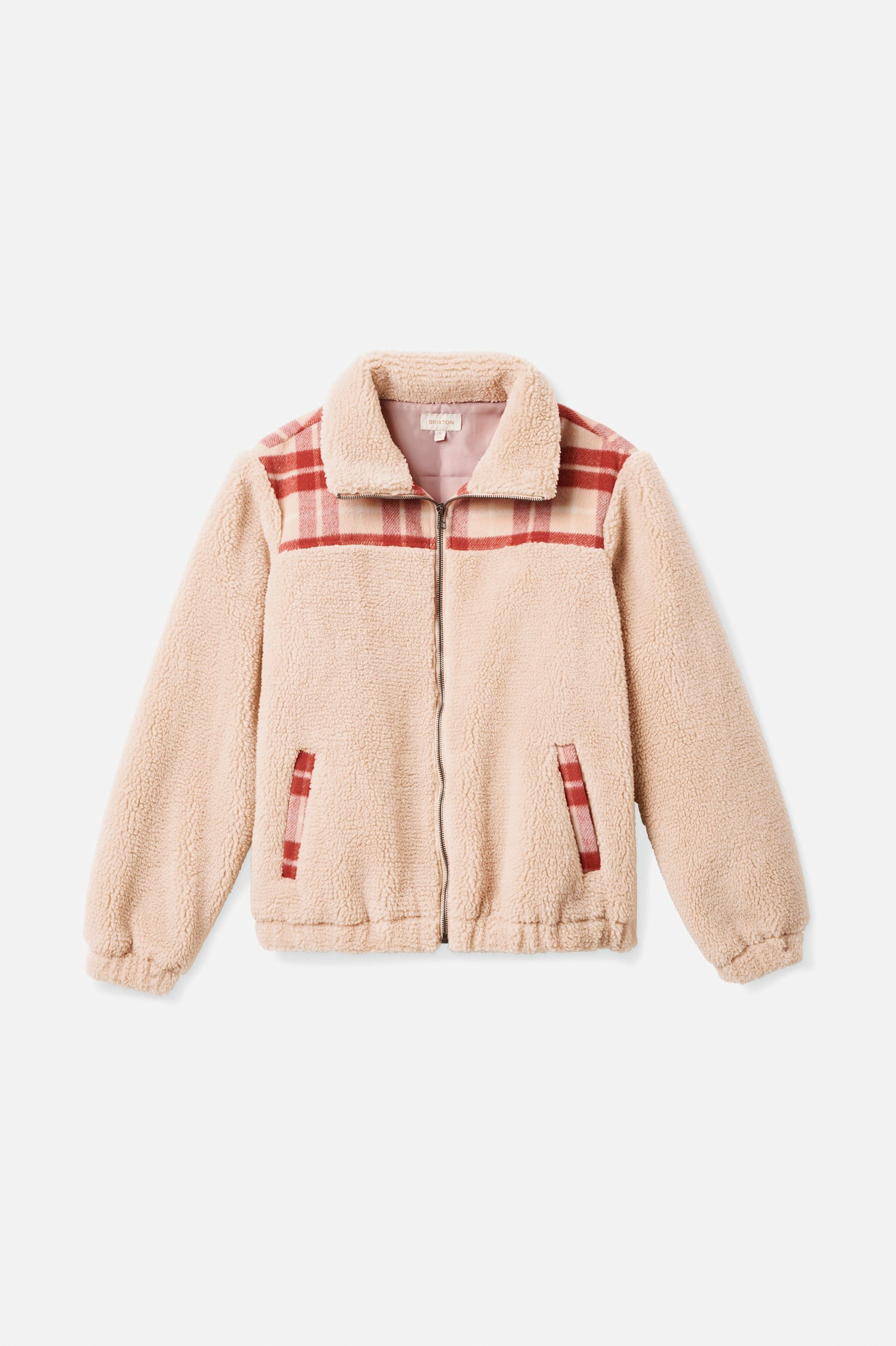 The Sheridan is a modern tribute to the jacket you permanently borrowed from your mom's closet. Built with plush polyester fleece, it has a full zip and elasticized cuffs and hemline. Plaid paneling contrasts the cozy sherpa and adds durability to the shoulders for your bags and backpacks. Keep it partly open and let the collar lie flat or zip it all the way up for a breeze-blocking mock neck finish.