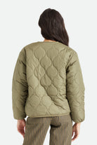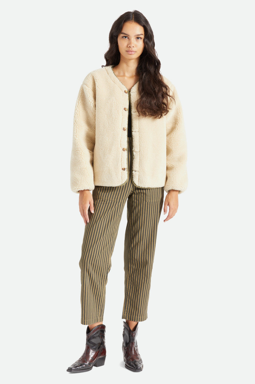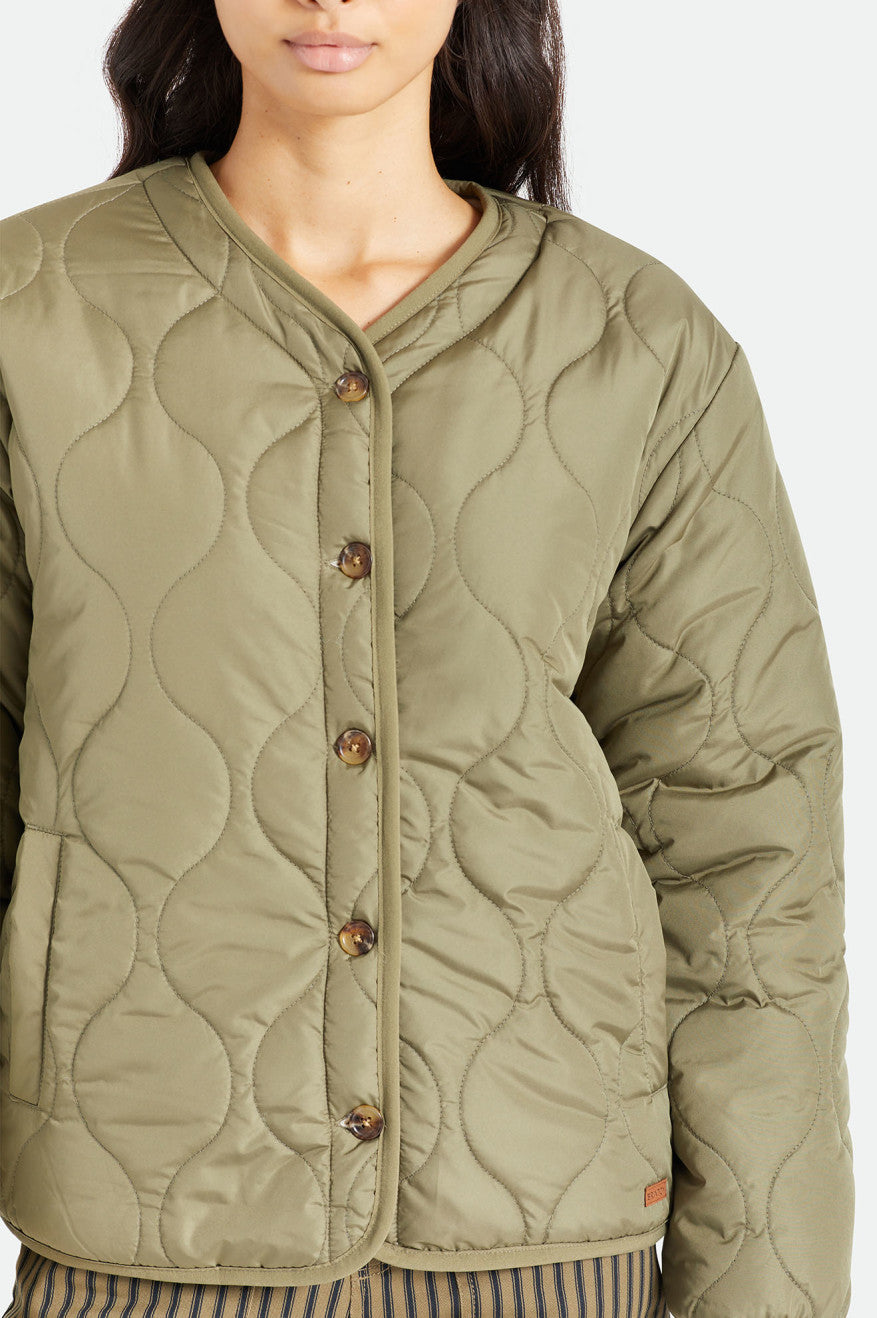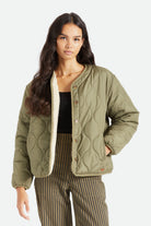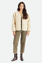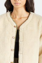 Like the perfect vintage piece you've been searching for, this is a bomber-inspired jacket with a just-right fit. The interior is lined with cozy sherpa fleece while the exterior boasts textured onion quilting. Reverse the jacket to show the fuzzy finish and turn your new favorite into a neutral layer. Detailed with horn buttons and elastic sleeve cuffs.