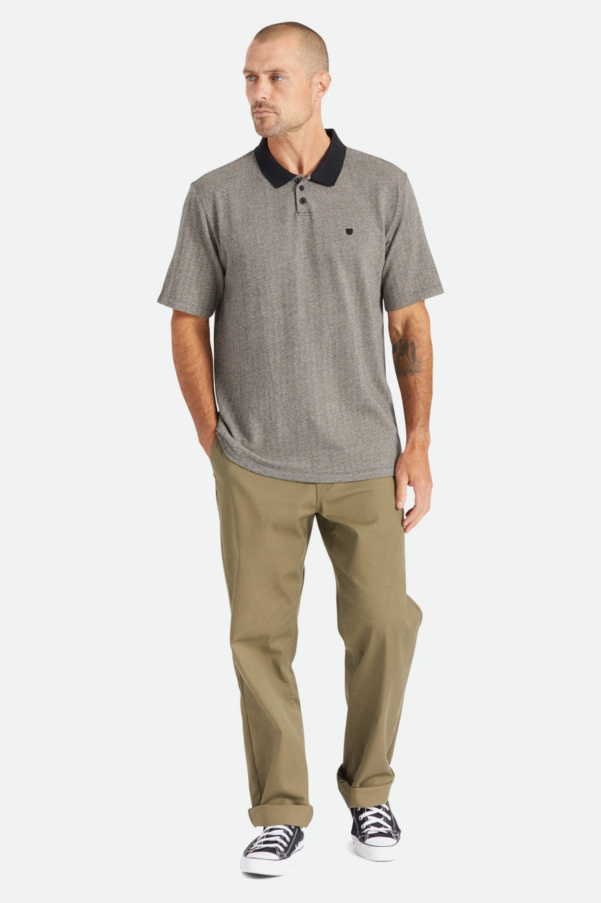This standard-fit polo has been updated with a custom yarn-dye herringbone pattern for a nod to classic menswear. A three button placket and jacquard knit collar keep the classic polo presence.