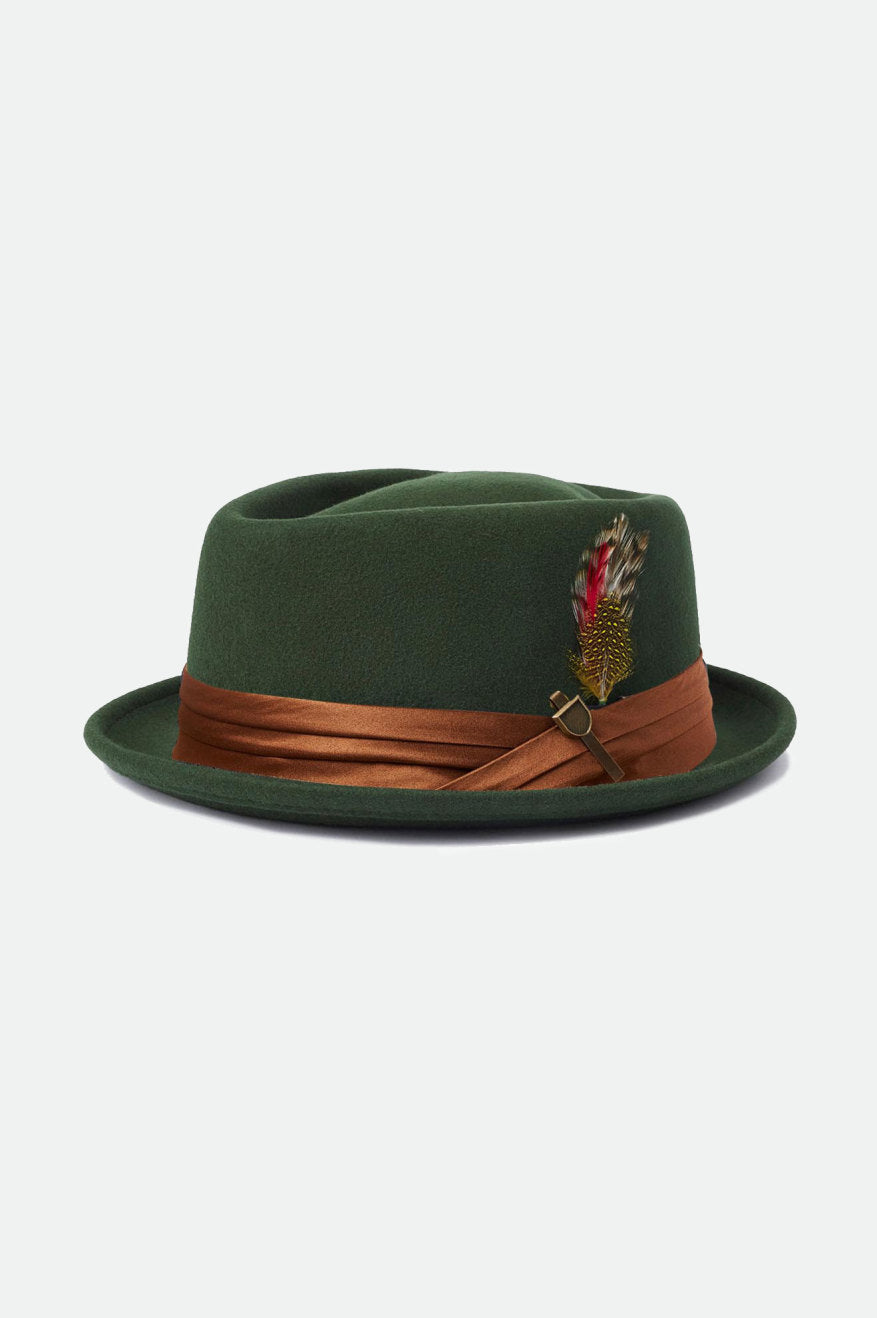 The Stout Pork Pie is a classic style hat. With a satin band, metal crest pin, and a custom line, this one isn’t short on details. Its feather completes the look and will elevate any outfit.