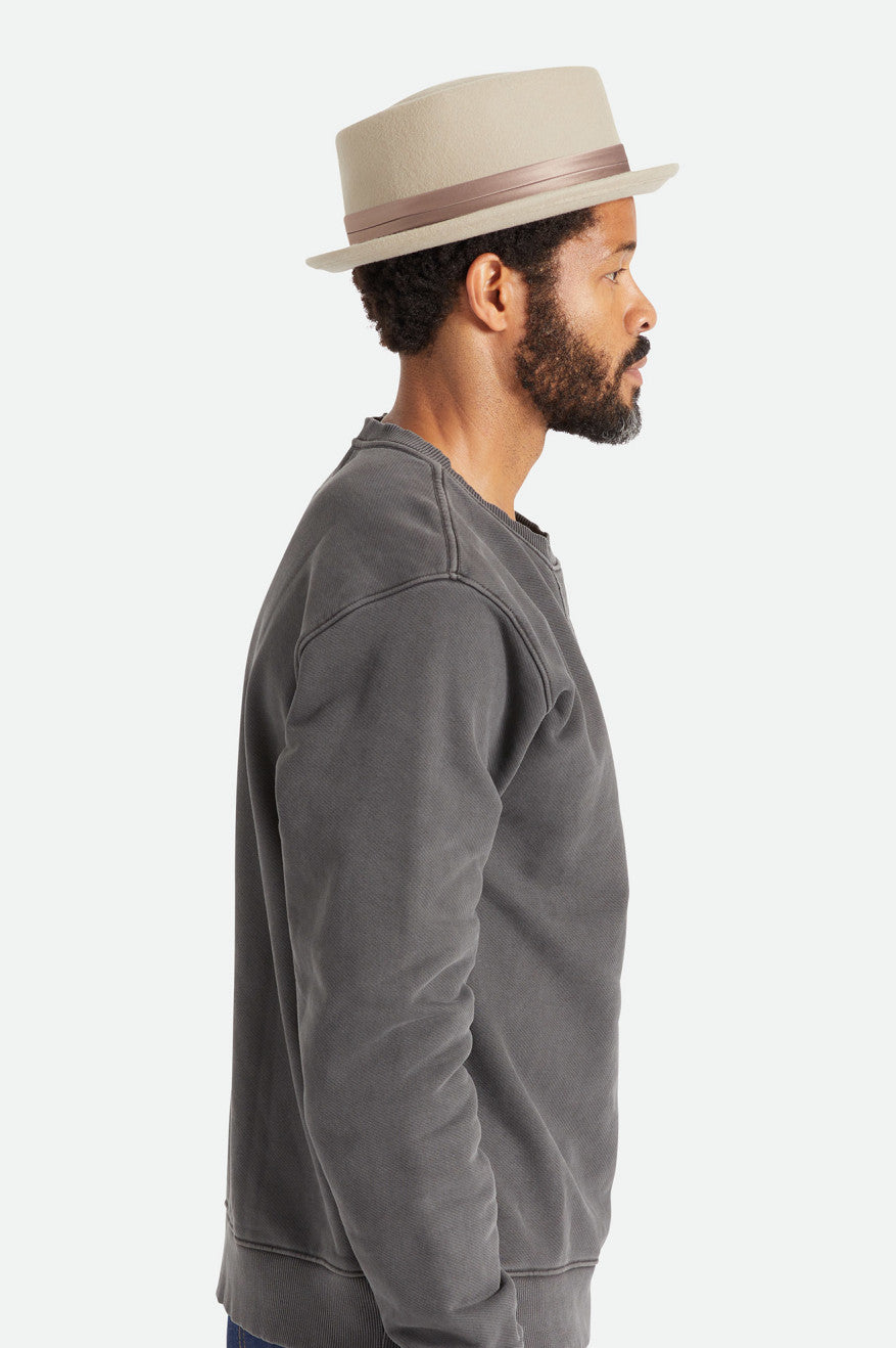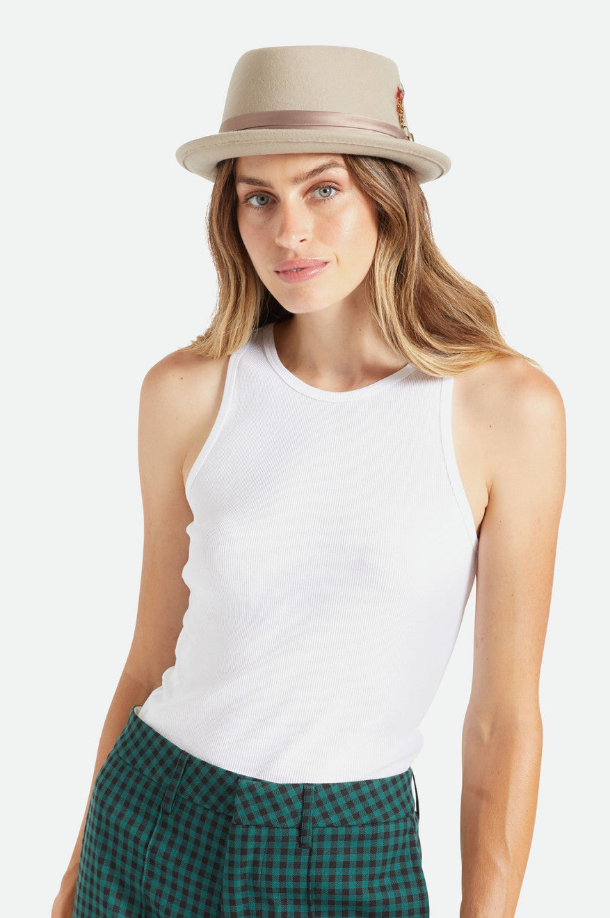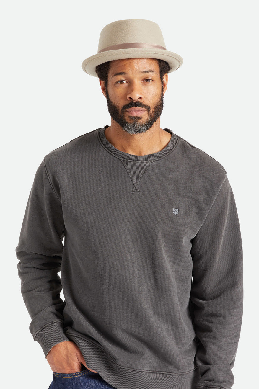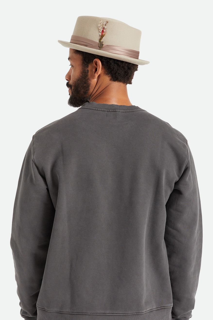 The Stout Pork Pie is a classic style hat. With a satin band, metal crest pin, and a custom line, this one isn’t short on details. Its feather completes the look and will elevate any outfit.