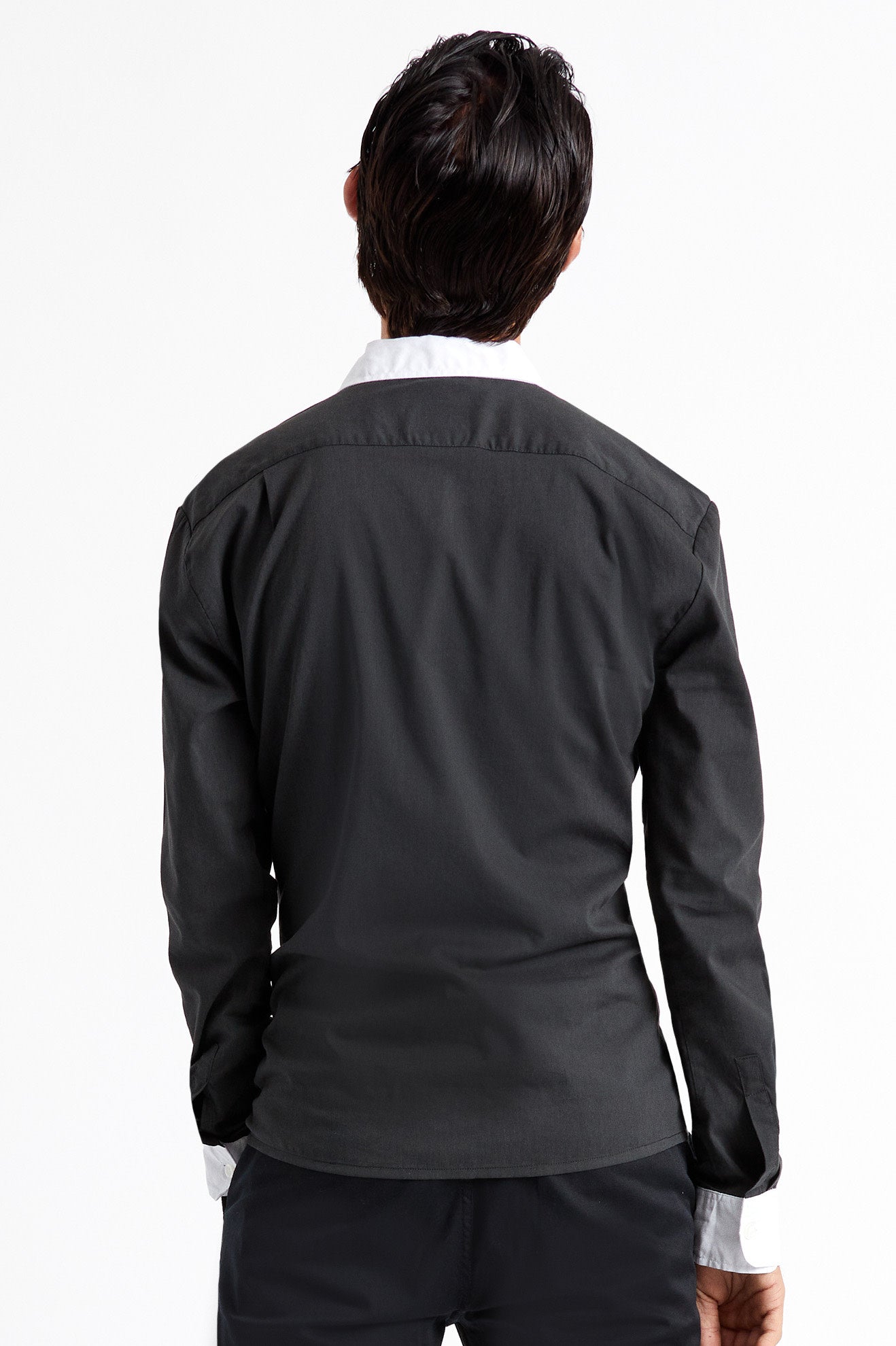 Featuring lightweight material constructed with a plain weave, this one has a contrast collar, as well as contrast pockets and cuffs—elevating it from a basic collared shirt to a stand-out piece.