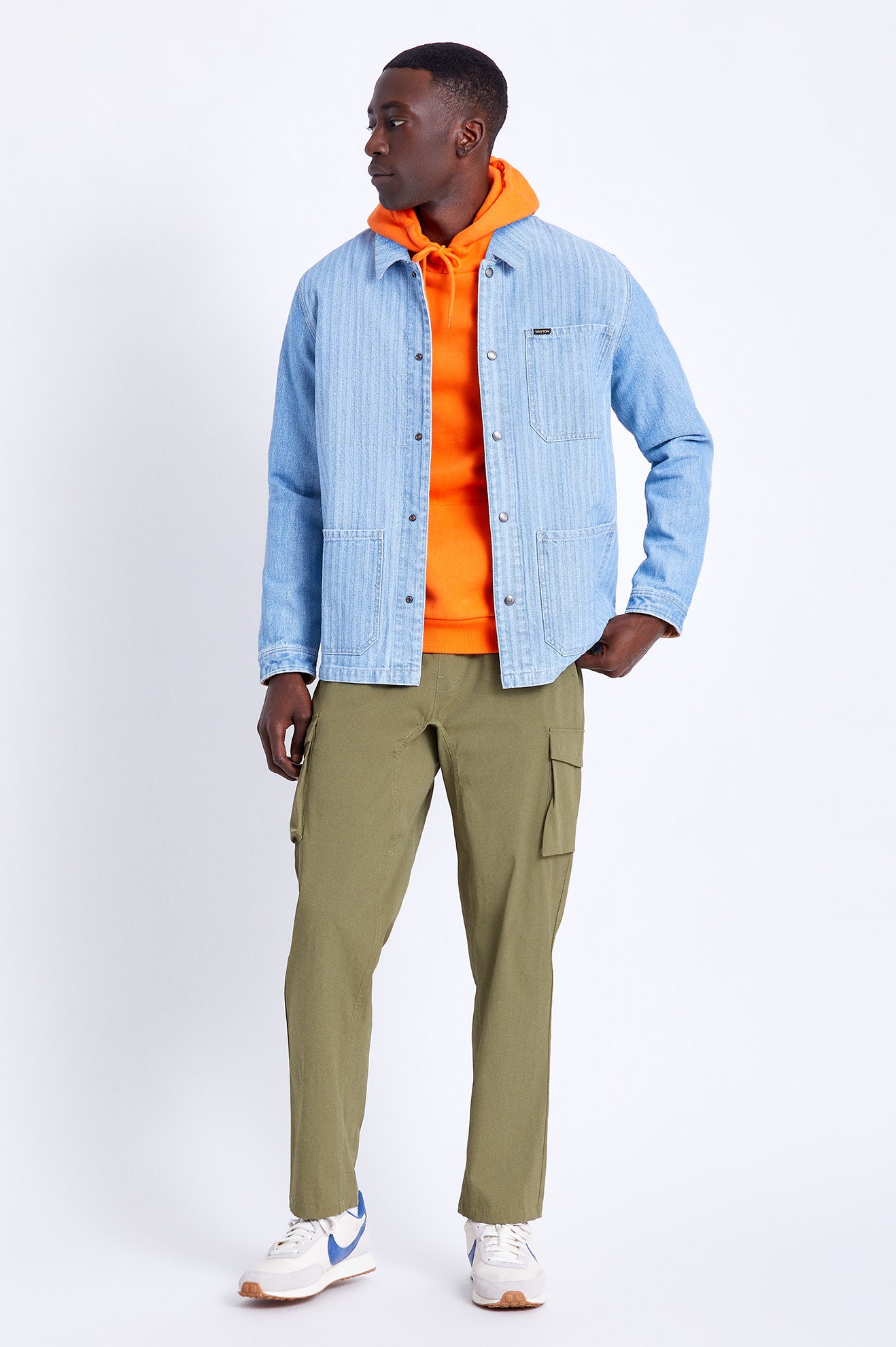 The Survey Reserve Chorecoat is a relaxed fit chore coat made of cotton and elastane stretch canvas that lets you move and breath throughout the day. Featuring a herringbone patterned front and a contrast collar, as well as pockets and metal snaps, this one is great for work and play. Utility-inspired and practical, this one makes a laidback style statement.