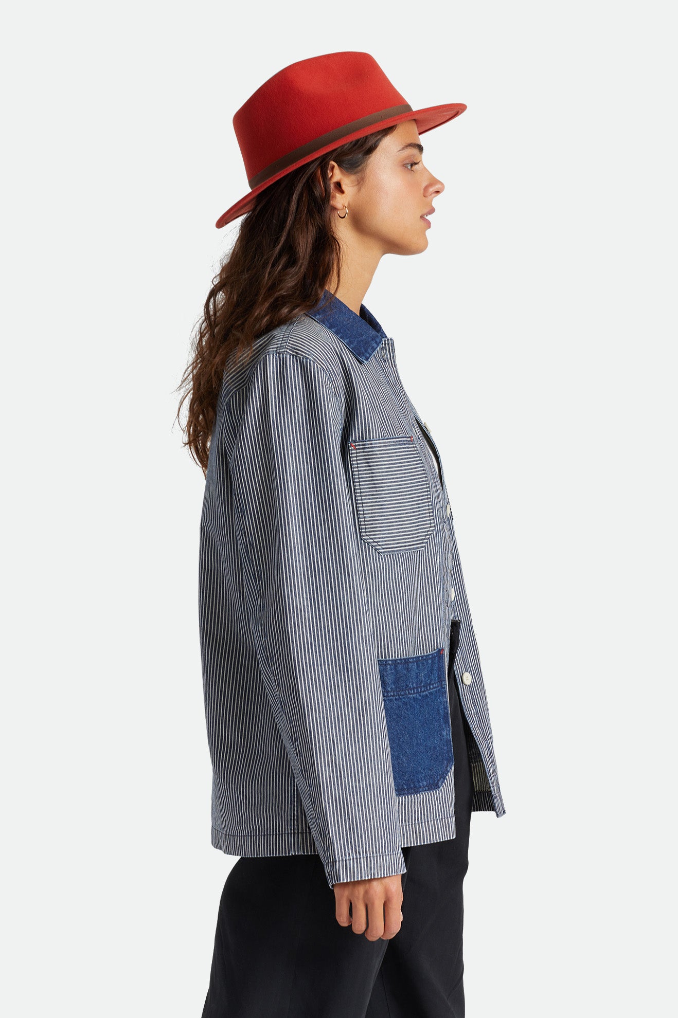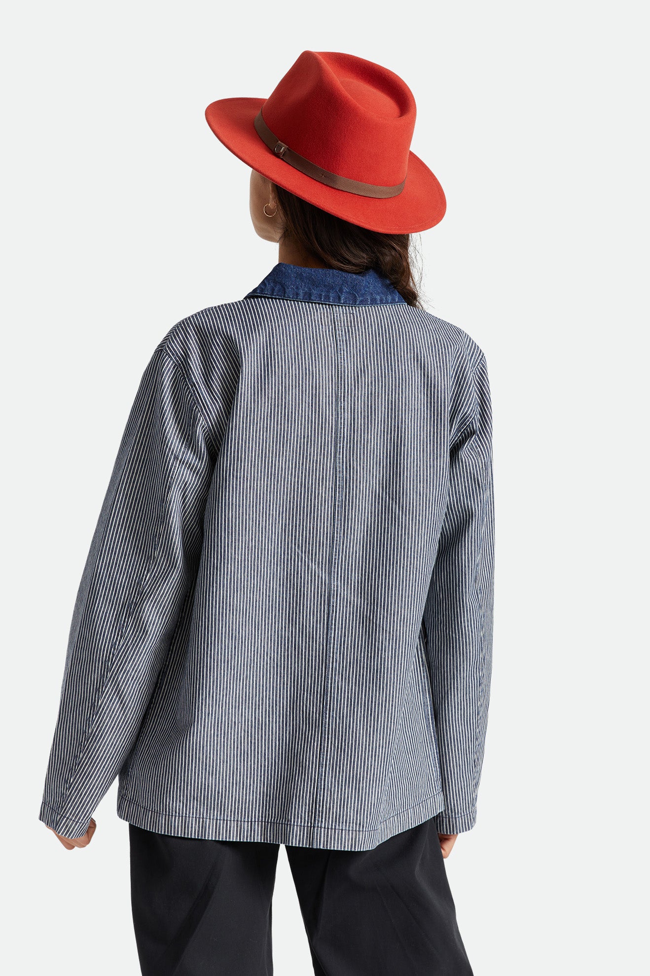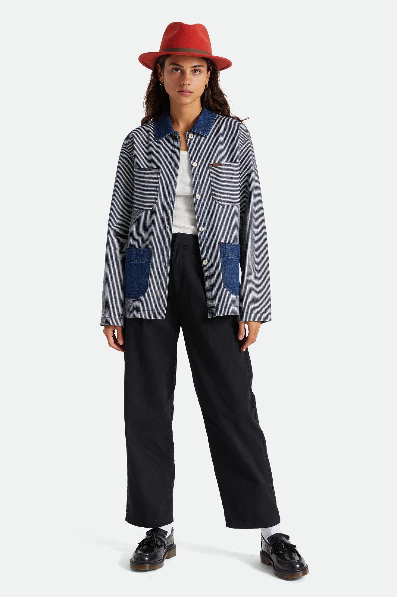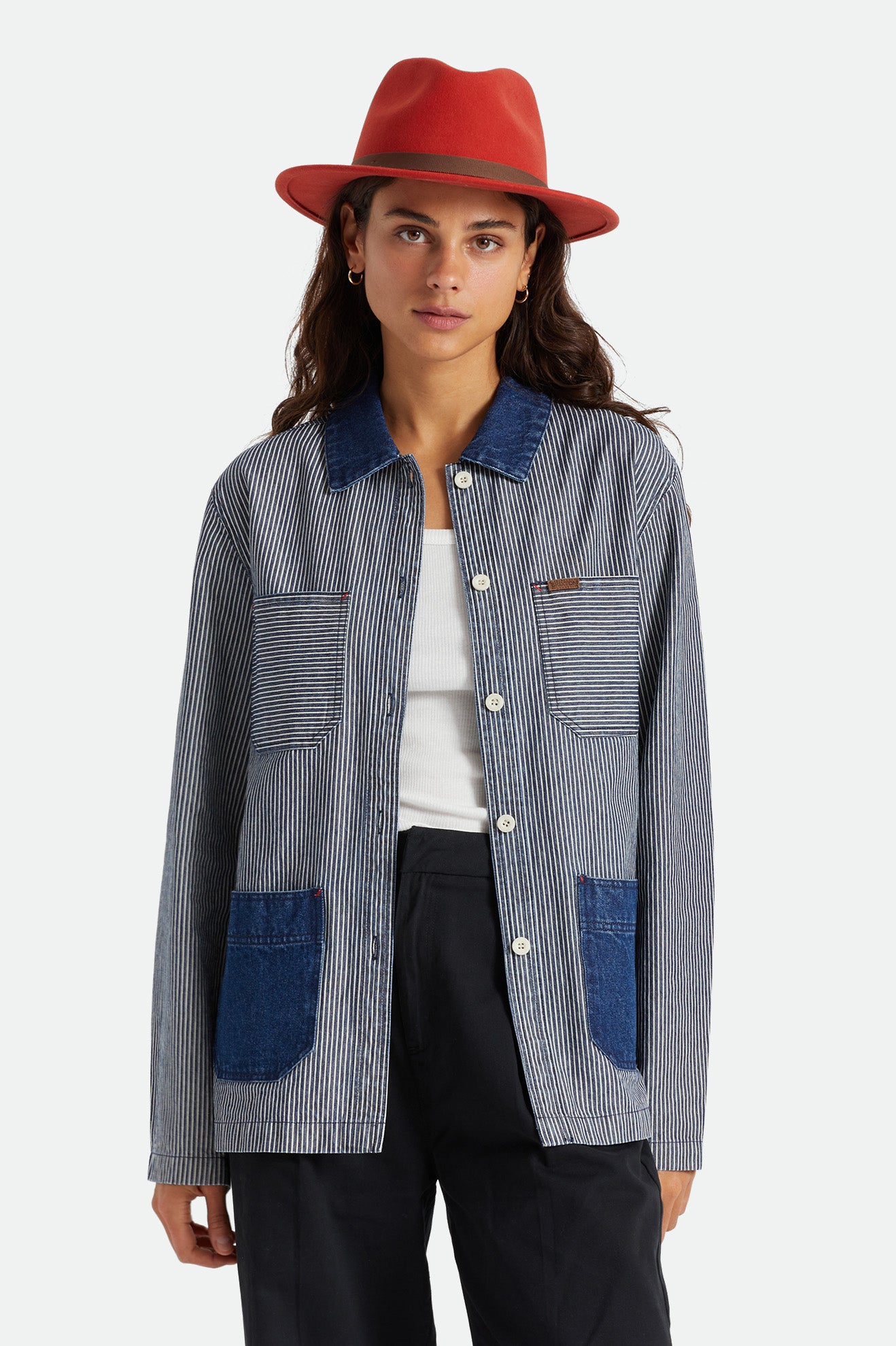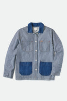 Yarn dyed railroad stripe 100% cotton indigo denim make up the Survey Chore Coat that will be your go-to on those chillier days. Four patch pockets for style and function.