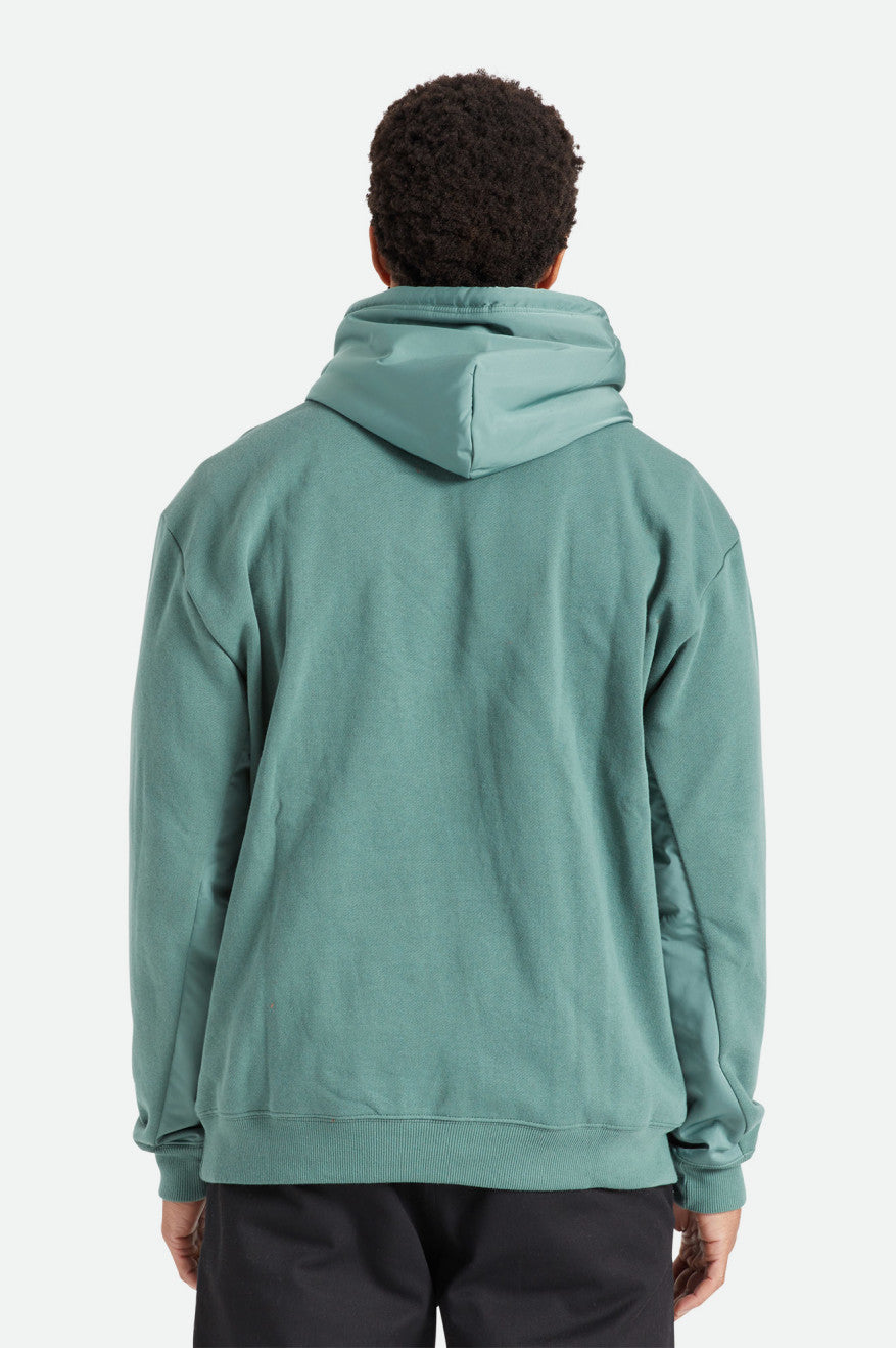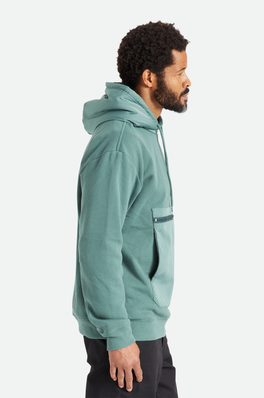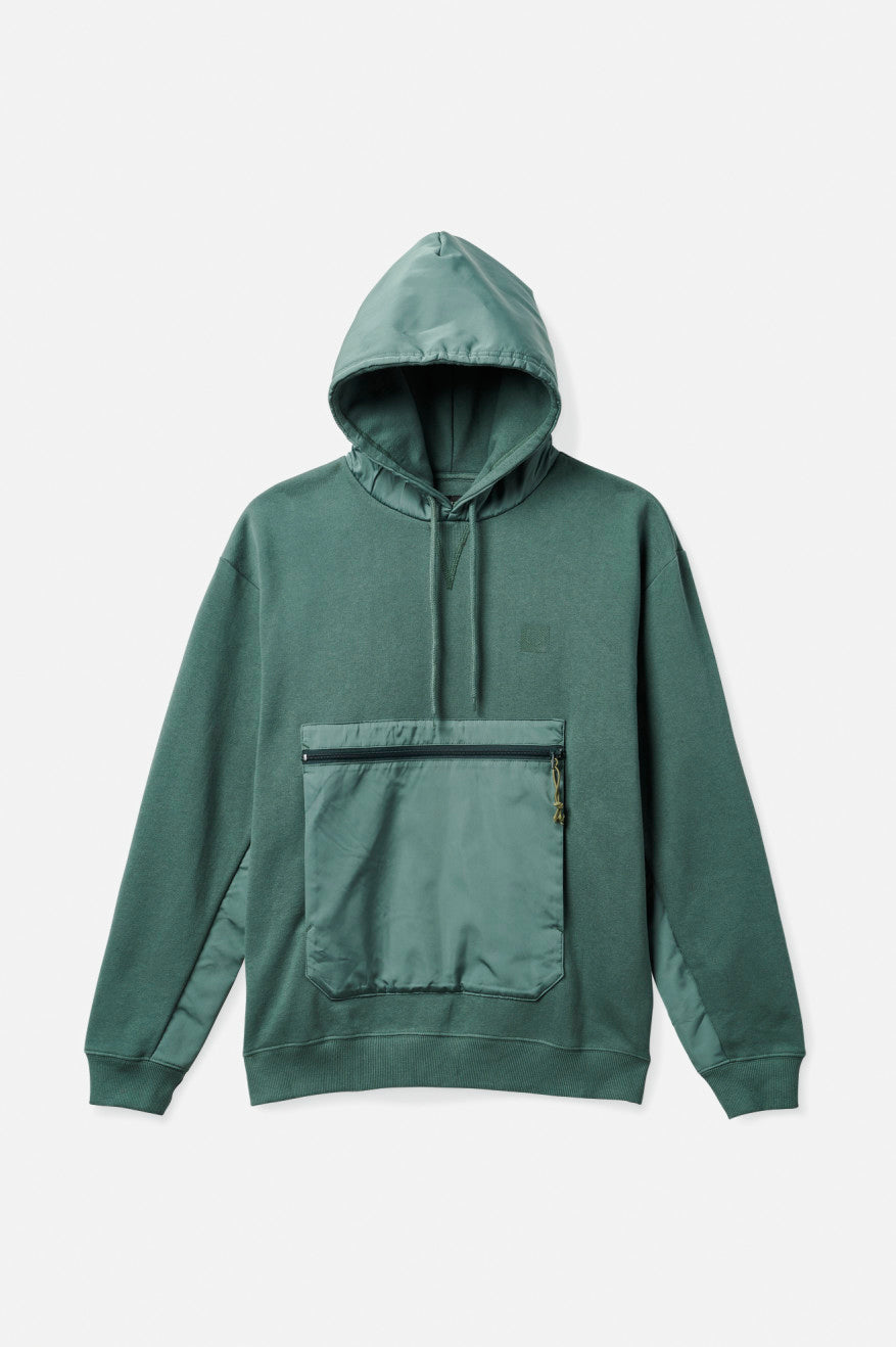 The Utility X Hood is a plush pullover hoodie made from a recycled poly blend. It's contrasted by nylon paneling on the hood, sleeves and oversize front zip pocket. Inset sleeves and a water-repellent DWR coating add even more durability.