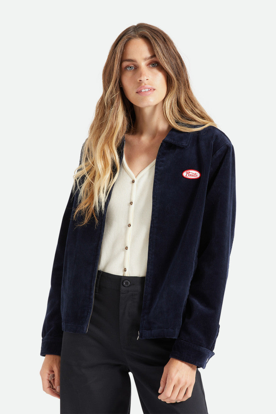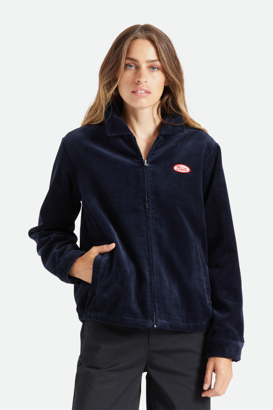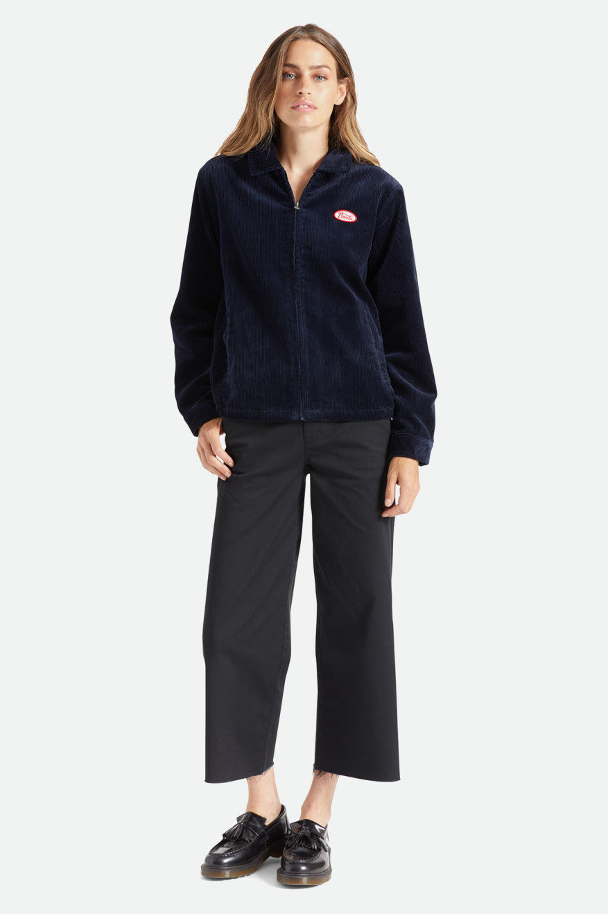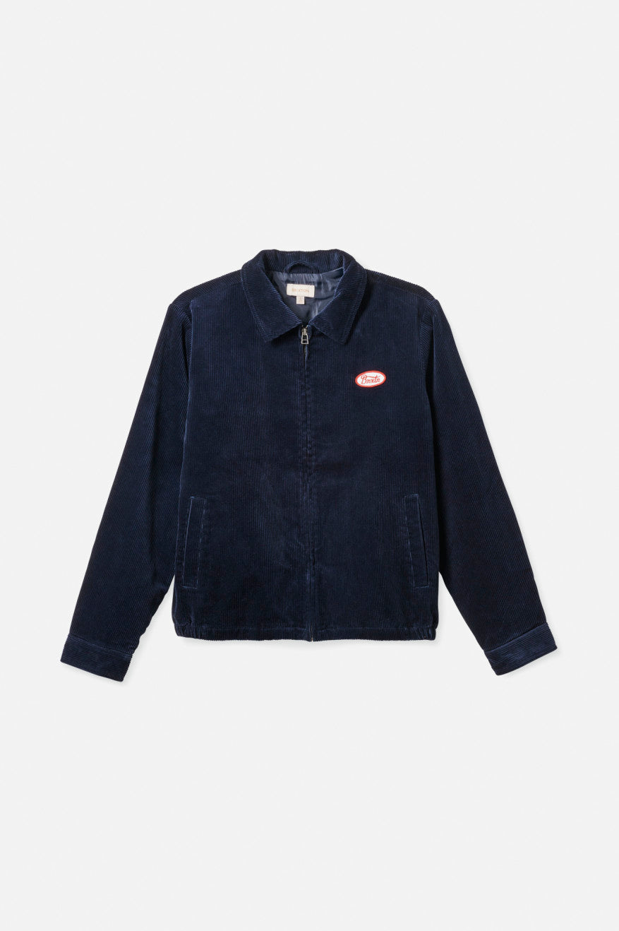 The Utopia Jacket borrows its structure from a classic workshop jacket. It has a relaxed collar, left chest patch and full zip. Finished with welt pockets and an elasticized hem, this piece is an easy topper for work days and weekends.