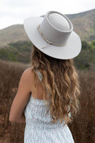 The Vale Hat is a timeless boater hat with a high crown and round crease. It’s made with stiff Australian wool for enduring structure and finished with a suede hat band with tails. Find your perfect fit with the internal adjustable sweatband.
