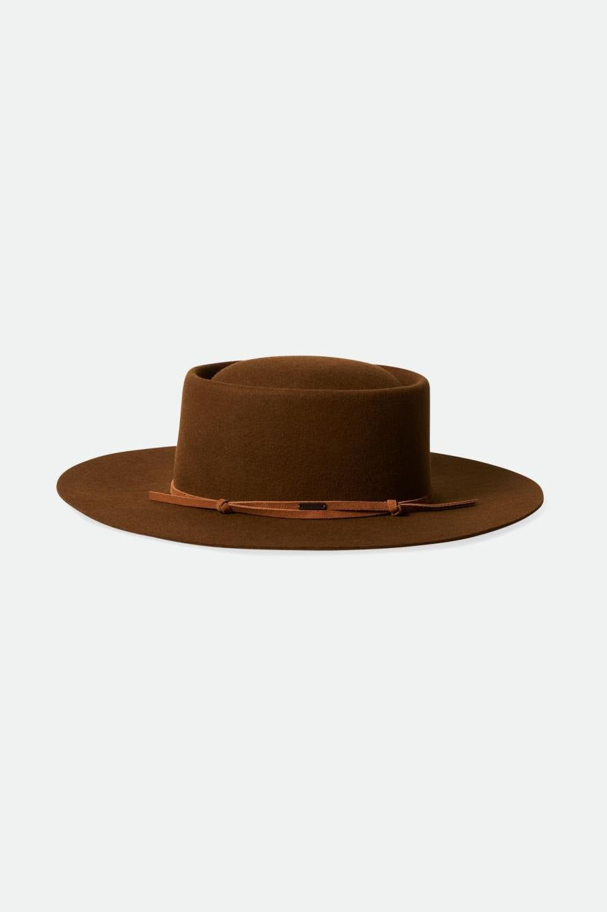 The Vale Hat is a timeless boater hat with a high crown and round crease. It’s made with stiff Australian wool for enduring structure and finished with a suede hat band with tails. Find your perfect fit with the internal adjustable sweatband.
