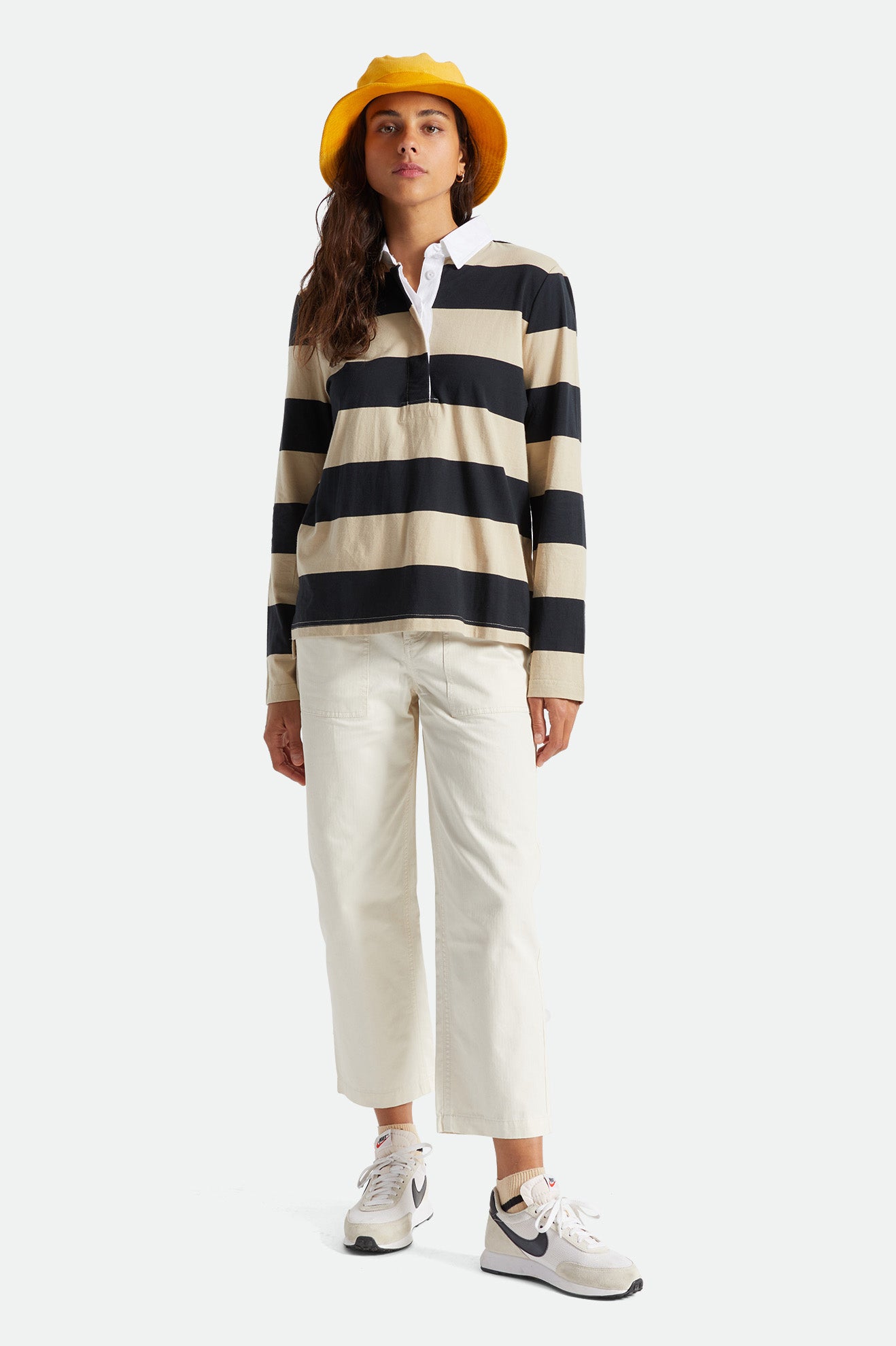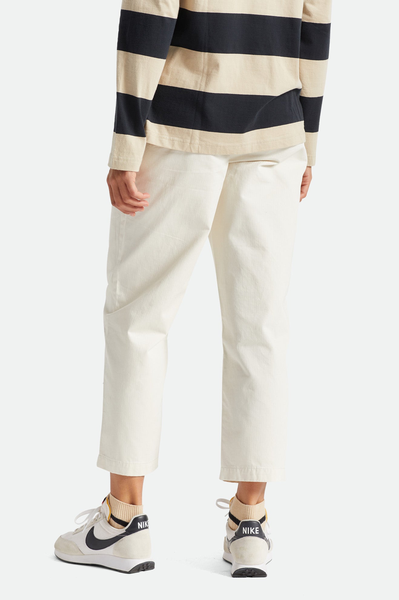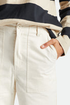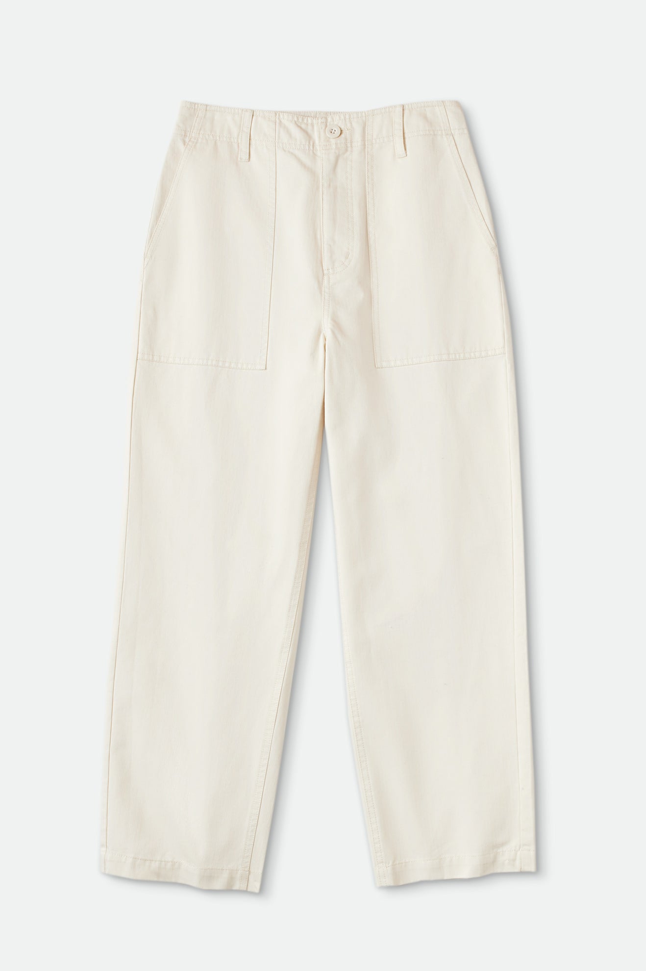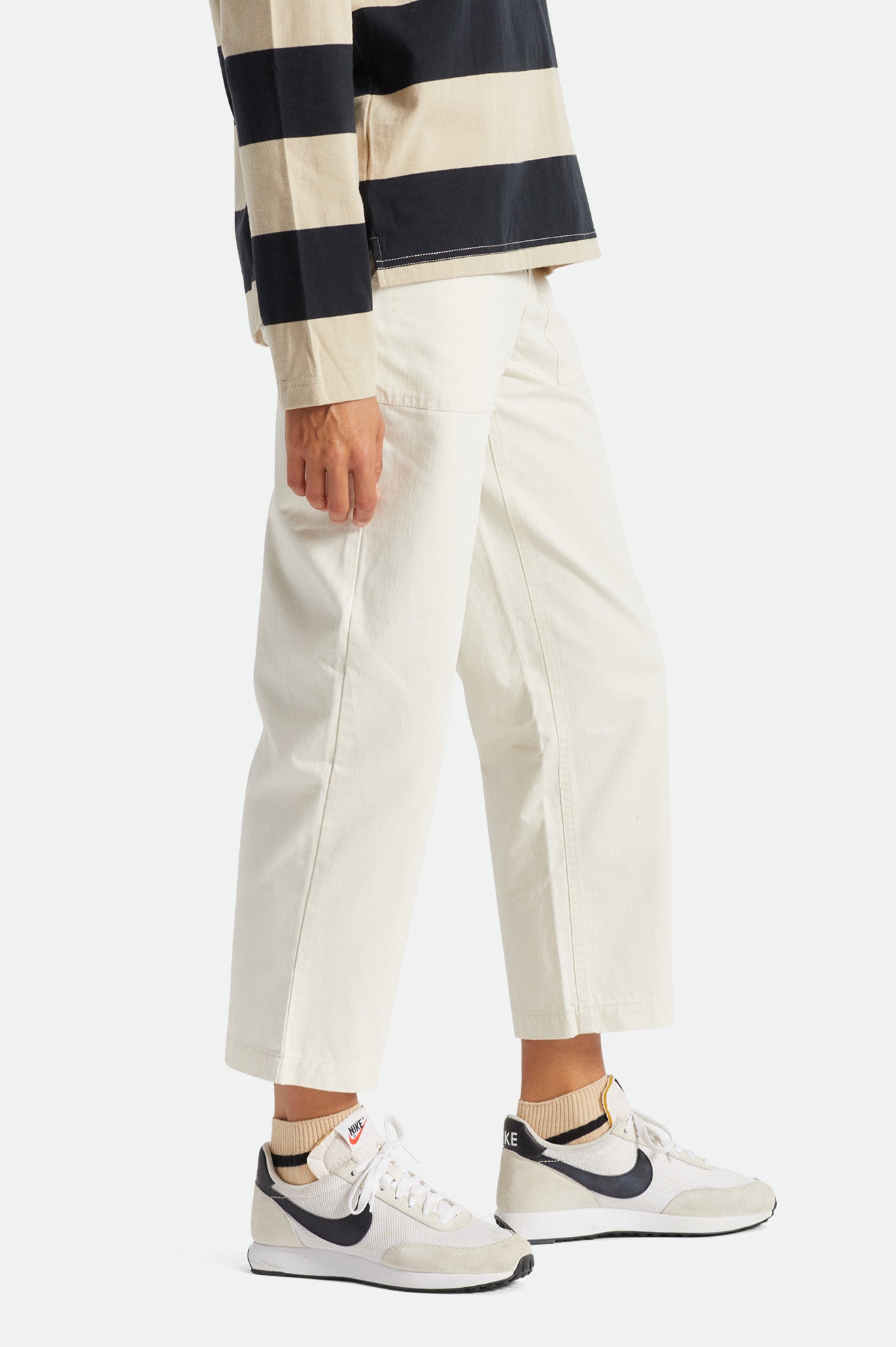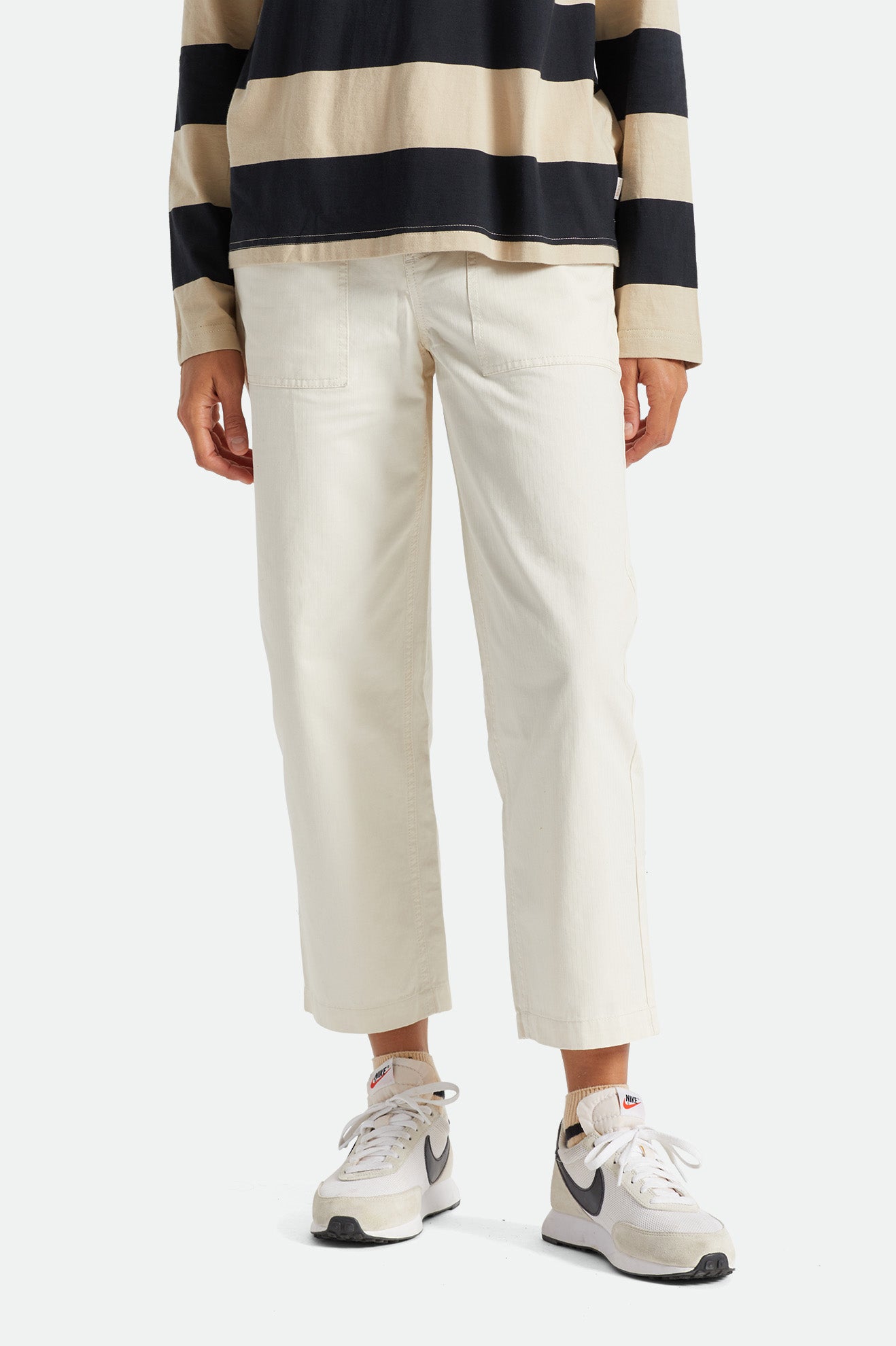 No-fuss pants that are functional, comfortable, and easy to match.The Dove colorway is made of cotton herringbone twill while theRailroad Stripe colorway is made of 100% cotton denim. Both feature patch pockets at front and back and a Hollywood waistband, plus a logo label at the back pocket flap.