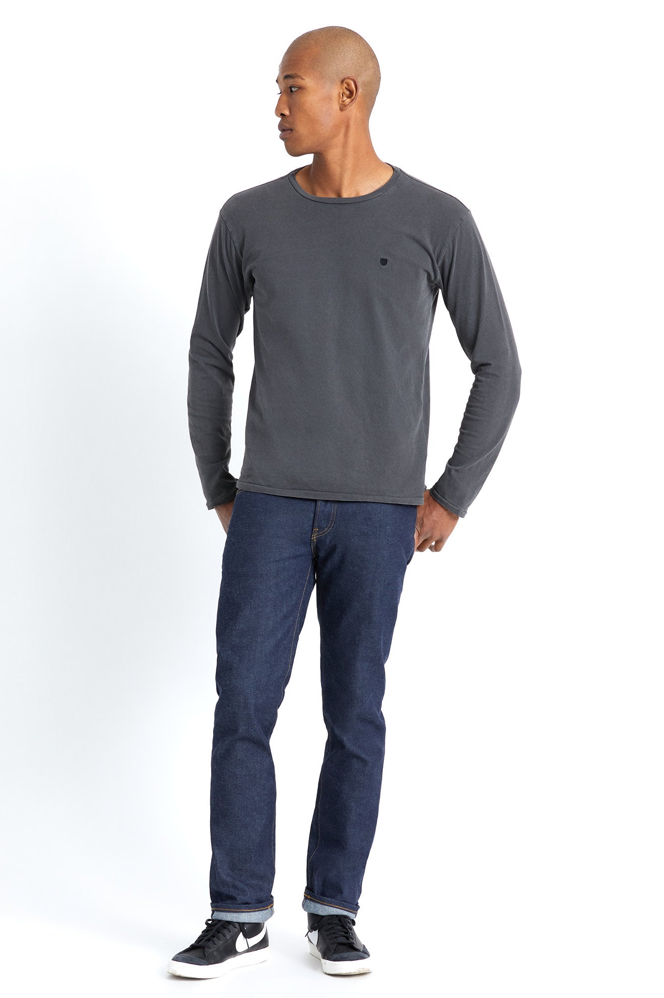 Like a well-worn favorite you’ve had for years and refuse to let go. Made with premium cotton textile, densely knitted, featuring a garment-dyed, distressed wash and vintage style pick-stitching at hem and sleeve. It delivers an elevated style and broken-in comfort, perfect for layering and pairing to just about anything in your closet. How? Because we dye the whole garment after it’s been built resulting in highs and lows and a worn in look. Why? Because it creates a softer feel, and a distinctive faded look, perfect for everything. The standard fit is comfortable, but not too roomy, for a refined but casual look.