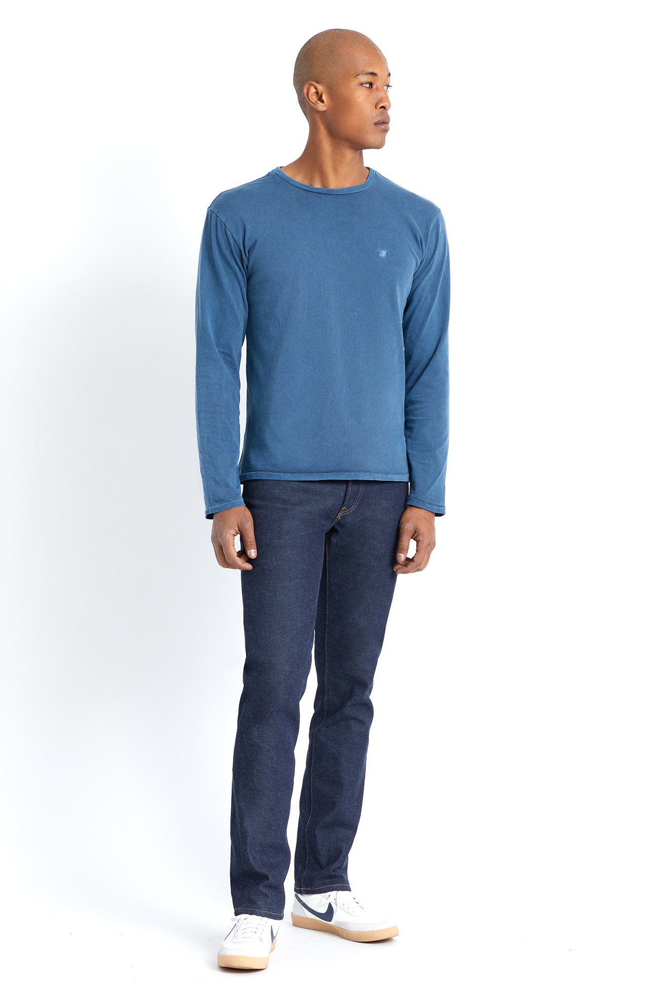 Like a well-worn favorite you’ve had for years and refuse to let go. Made with premium cotton textile, densely knitted, featuring a garment-dyed, distressed wash and vintage style pick-stitching at hem and sleeve. It delivers an elevated style and broken-in comfort, perfect for layering and pairing to just about anything in your closet. How? Because we dye the whole garment after it’s been built resulting in highs and lows and a worn in look. Why? Because it creates a softer feel, and a distinctive faded look, perfect for everything. The standard fit is comfortable, but not too roomy, for a refined but casual look.