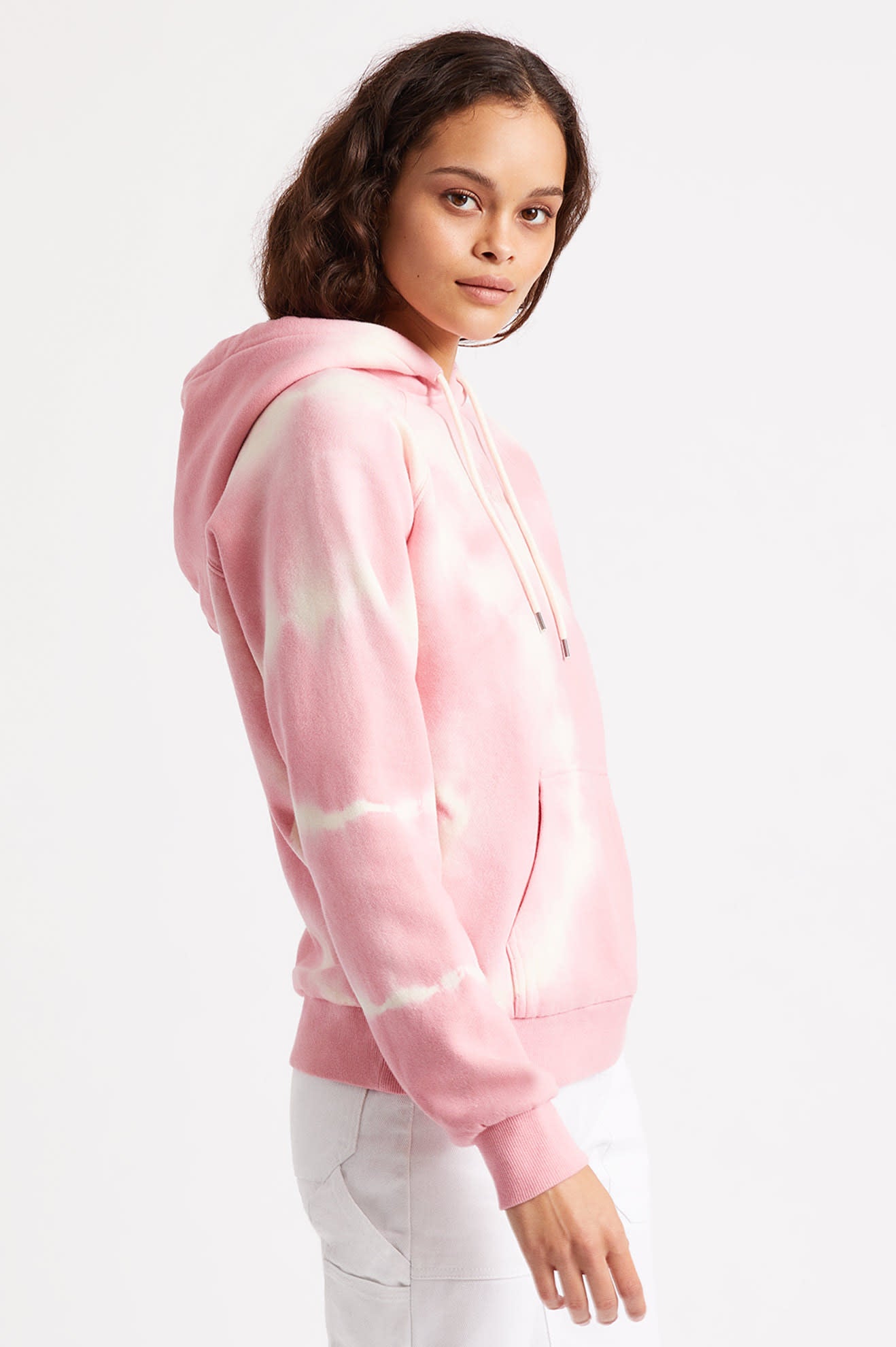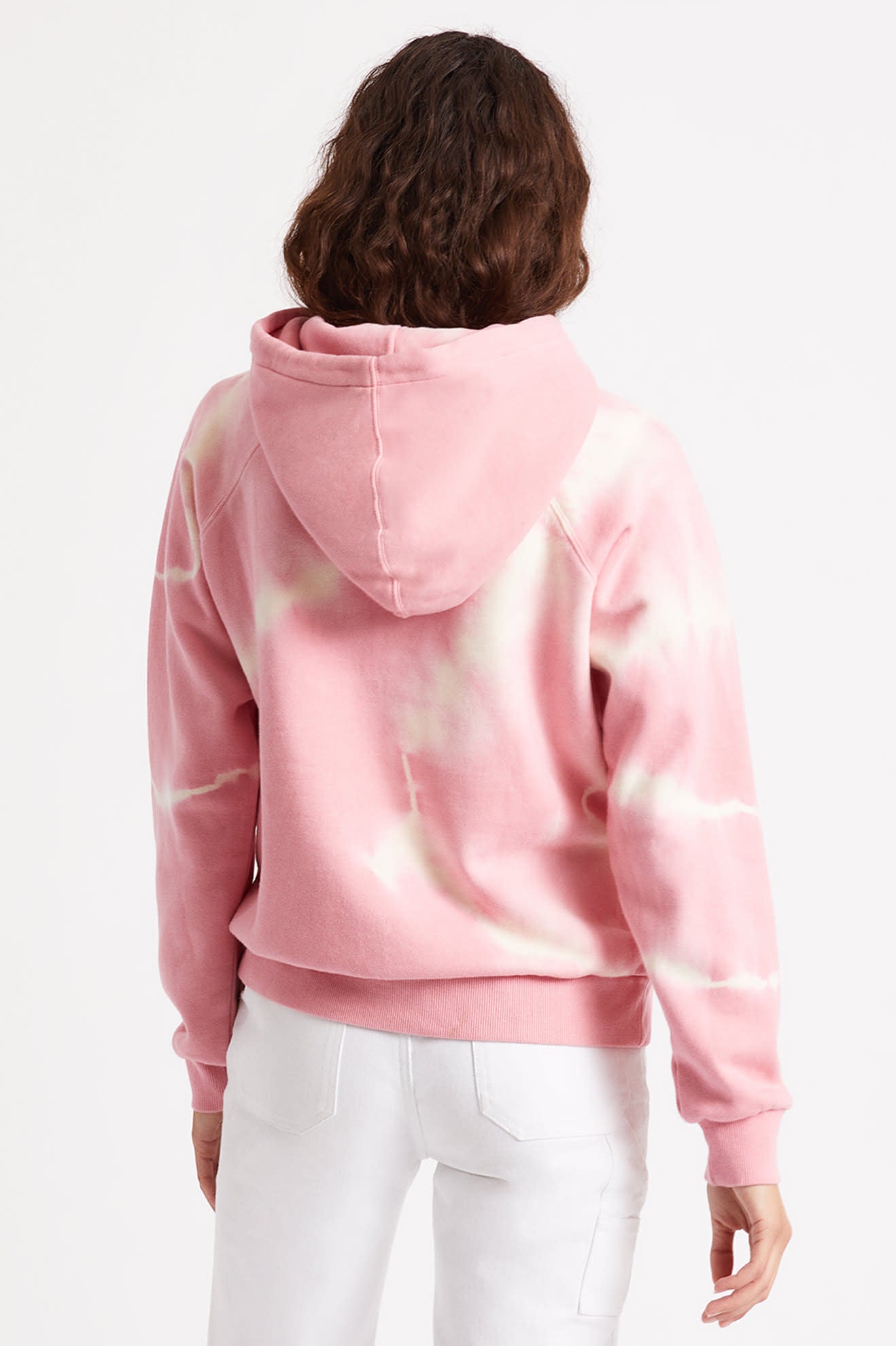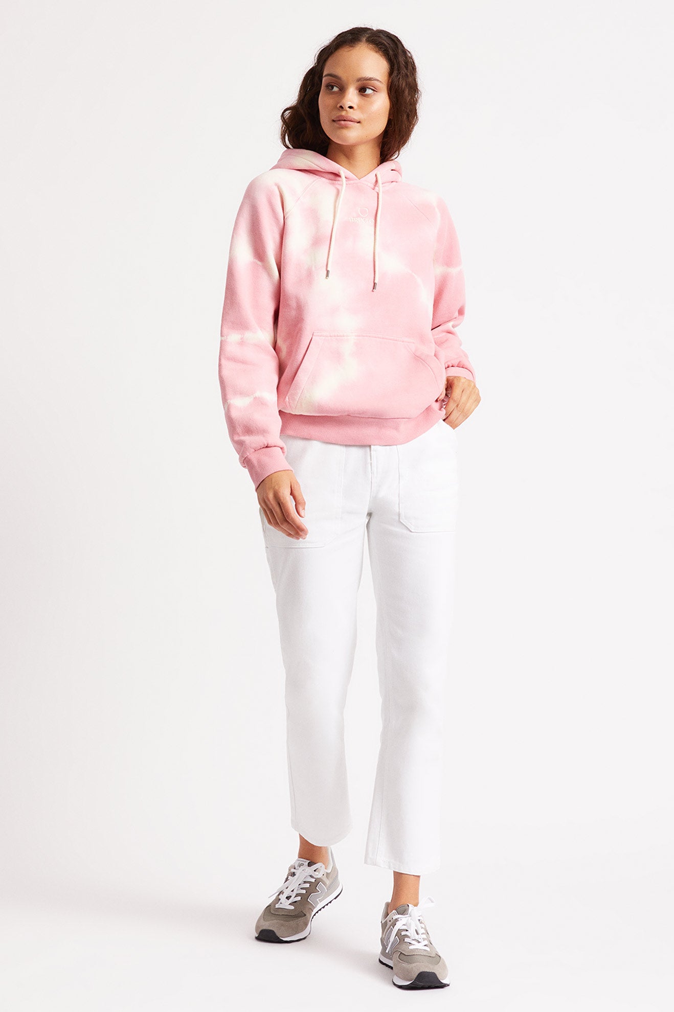 Designed with a mid-weight material, this fleece features ribbed spandex trim, raglan arm seams, and metal tipping at the drawcord ends. Finished with a tie-dye wash, this sweet sweater is both dreamy and functional for day-to-day wear.
